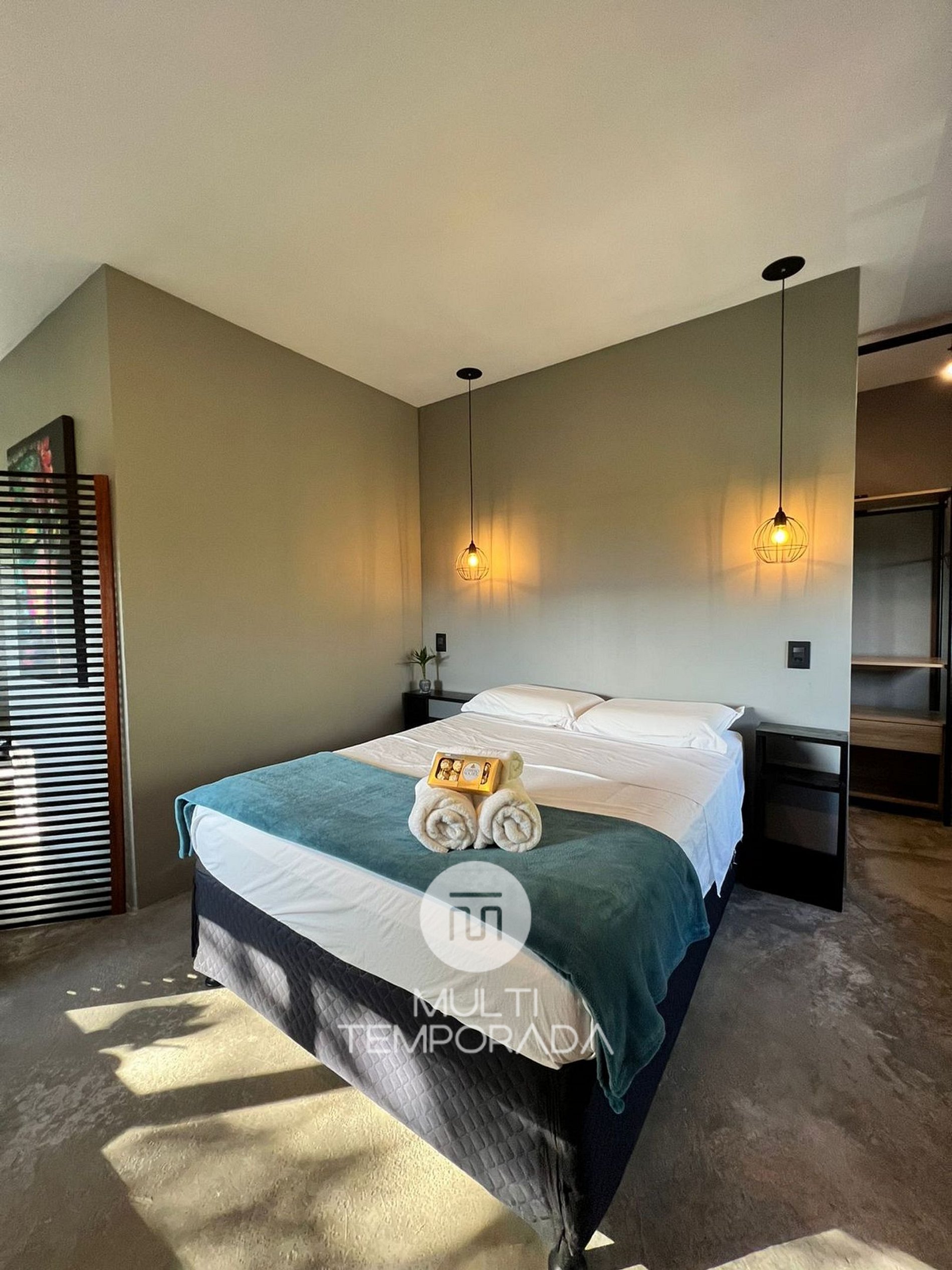 Comodidades da unidade: Deck grande com vista privilegiada da natureza, lagoa da encantada e montanhas da região, churrasqueira privativa, lareira interna, internet Wi-Fi com fibra ótica para home-office (500 mega), roupas de cama, travesseiros e cobertores, toalhas de banho e secador de cabelo.