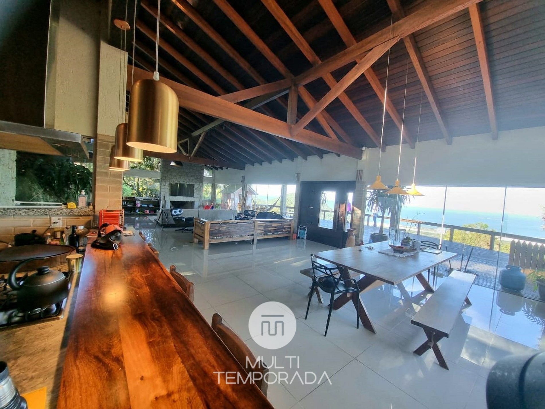 A Multitemporada apresenta a Casa Garopaba com Vista Panorâmica do Mar. Um espaço aconchegante e agradável que tem como destaque a sua arquitetura e localização (3,0km da Praia do Siriu - 7min). A unidade conta com 450m², vista singular do litoral, sala de estar, cozinha completa, churrasqueira, lareira interna, suítes climatizadas, rouparia de cama completa, TV Smart e uma decoração rústica que lhe conectará imersivamente na natureza! Tudo isso para a sua melhor experiência conosco!