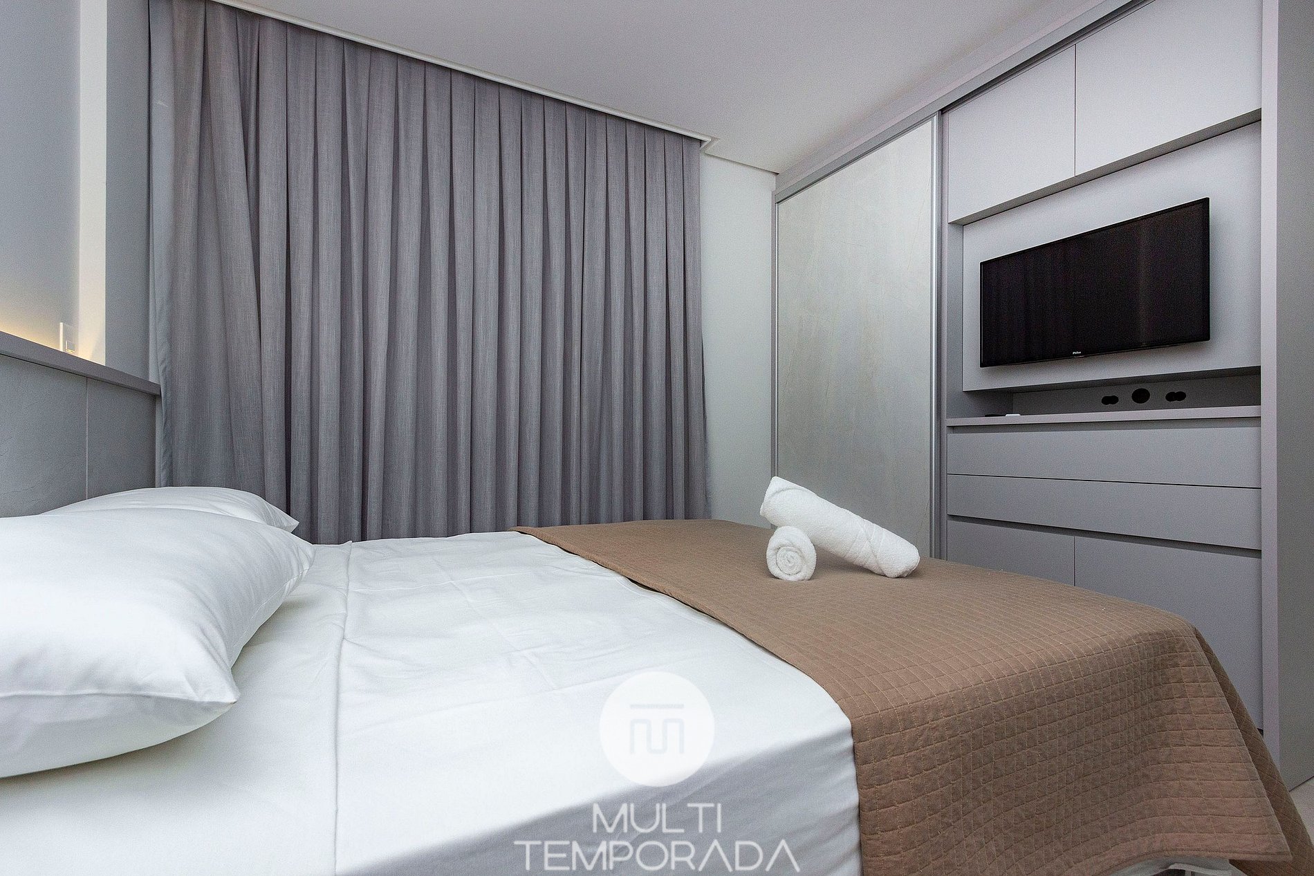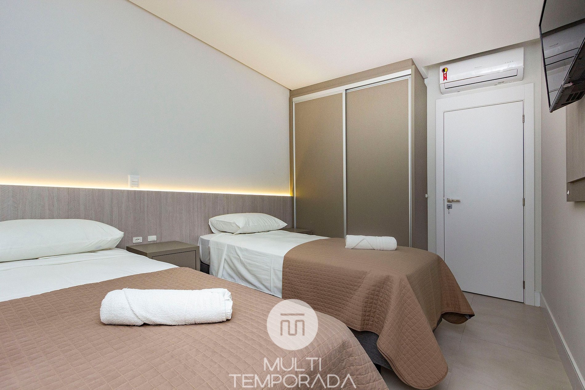 Apto amplo, moderno, muito bem equipado para as necessidades da estadia, quartos completos com tv, ar condicionado, roupas de cama e banho, cozinha completa.