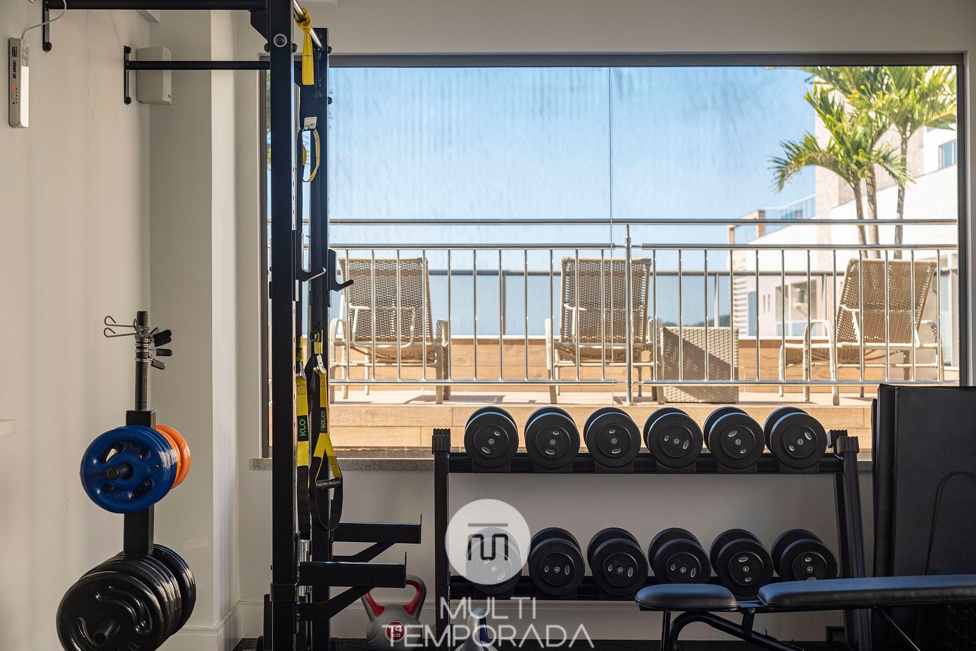 Piscina e academia no rooftop.