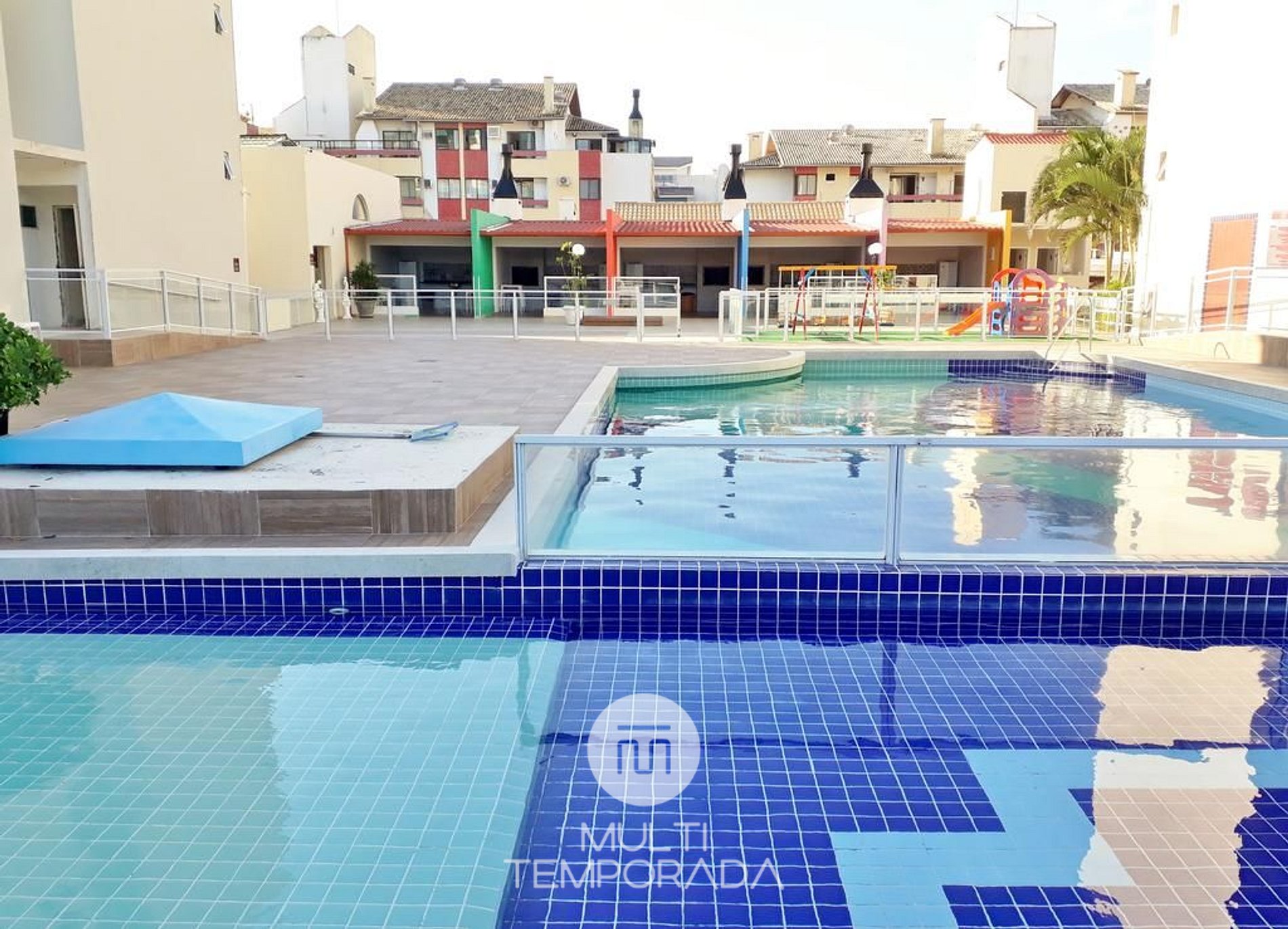 Instalaciones ,seguridad del complejo con piletas varias ,más climatizada ,quinchos con parrilla ,heladera súper completos,atención del personal,tiene un mini mercado dentro de la instalación con atención de autoservicio y pago excelente por si olvidas algo,sala de juego y lavandería ,plaza la verdad para venir con niños de 10 En la foto pueden ver la cercanía al mar desde el balcón se puede apreciar el mar