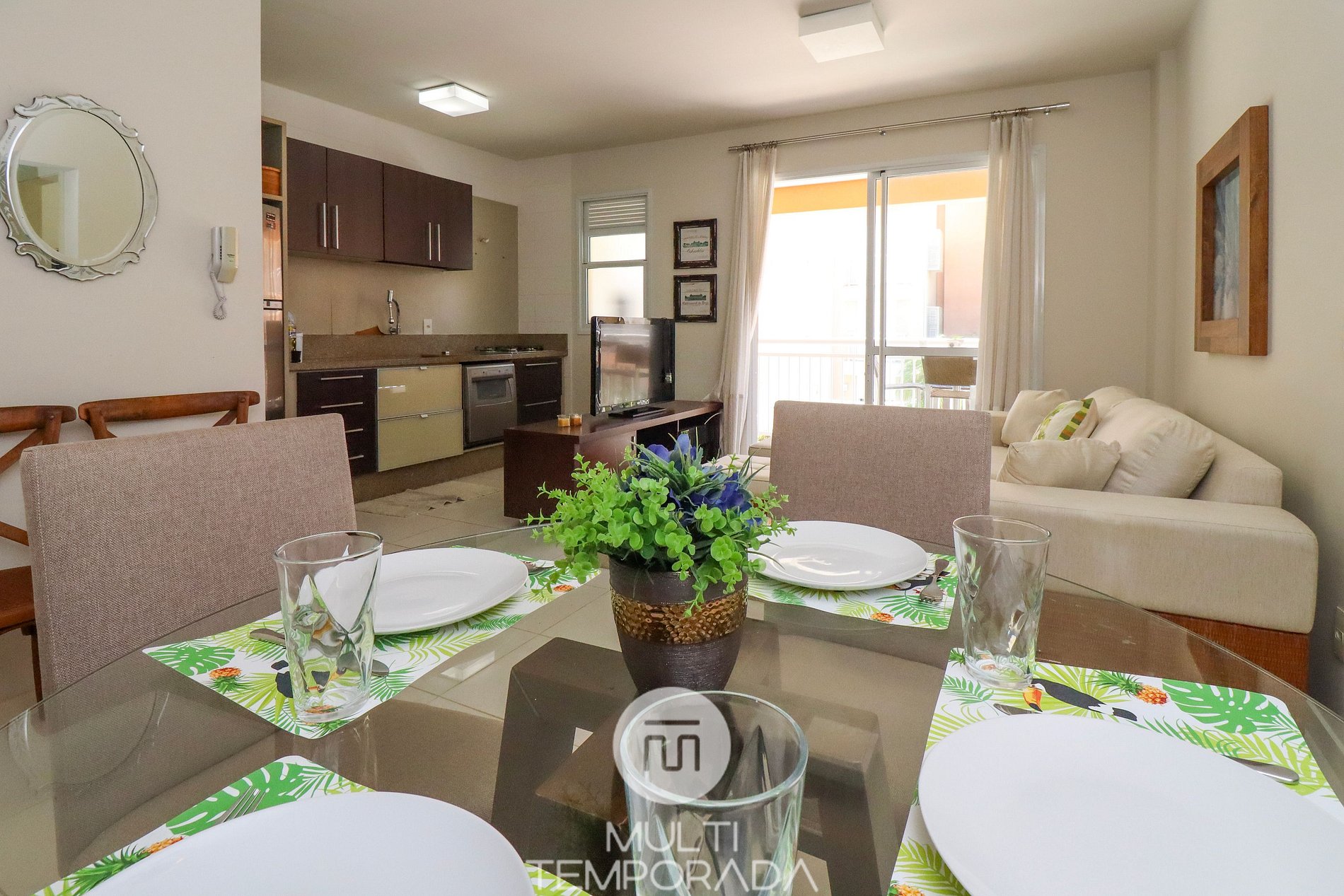 O apartamento é mobiliado, decorado e equipado com eletrodomésticos e utensílios para preparo de refeições, além de dispor de mantas e travesseiros para a sua maior comodidade.