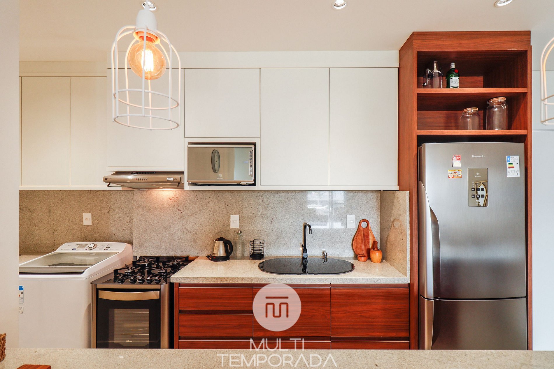 O apartamento é mobiliado, decorado e equipado com eletrodomésticos e utensílios para preparo de refeições, além de dispor de mantas e travesseiros para a sua maior comodidade.