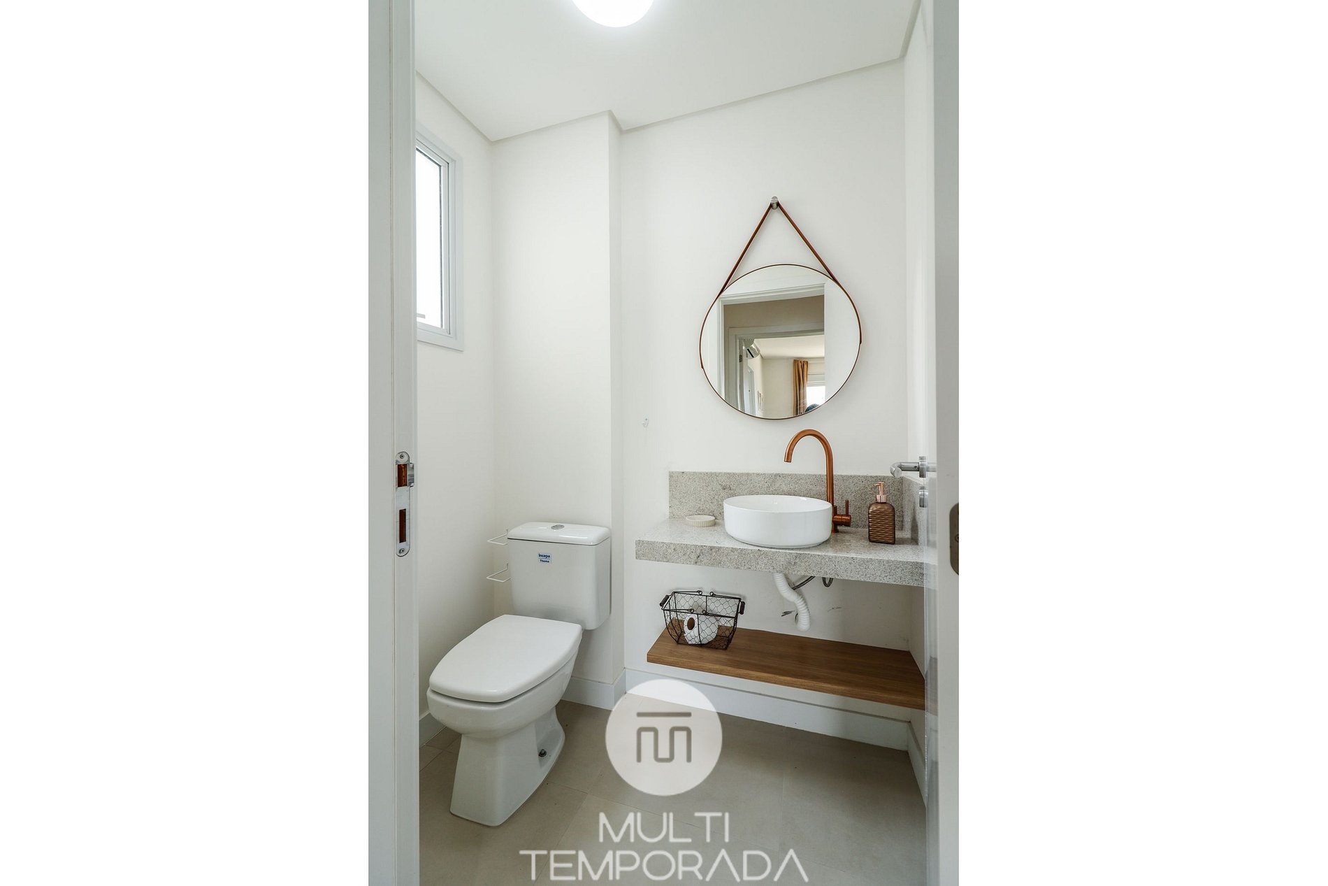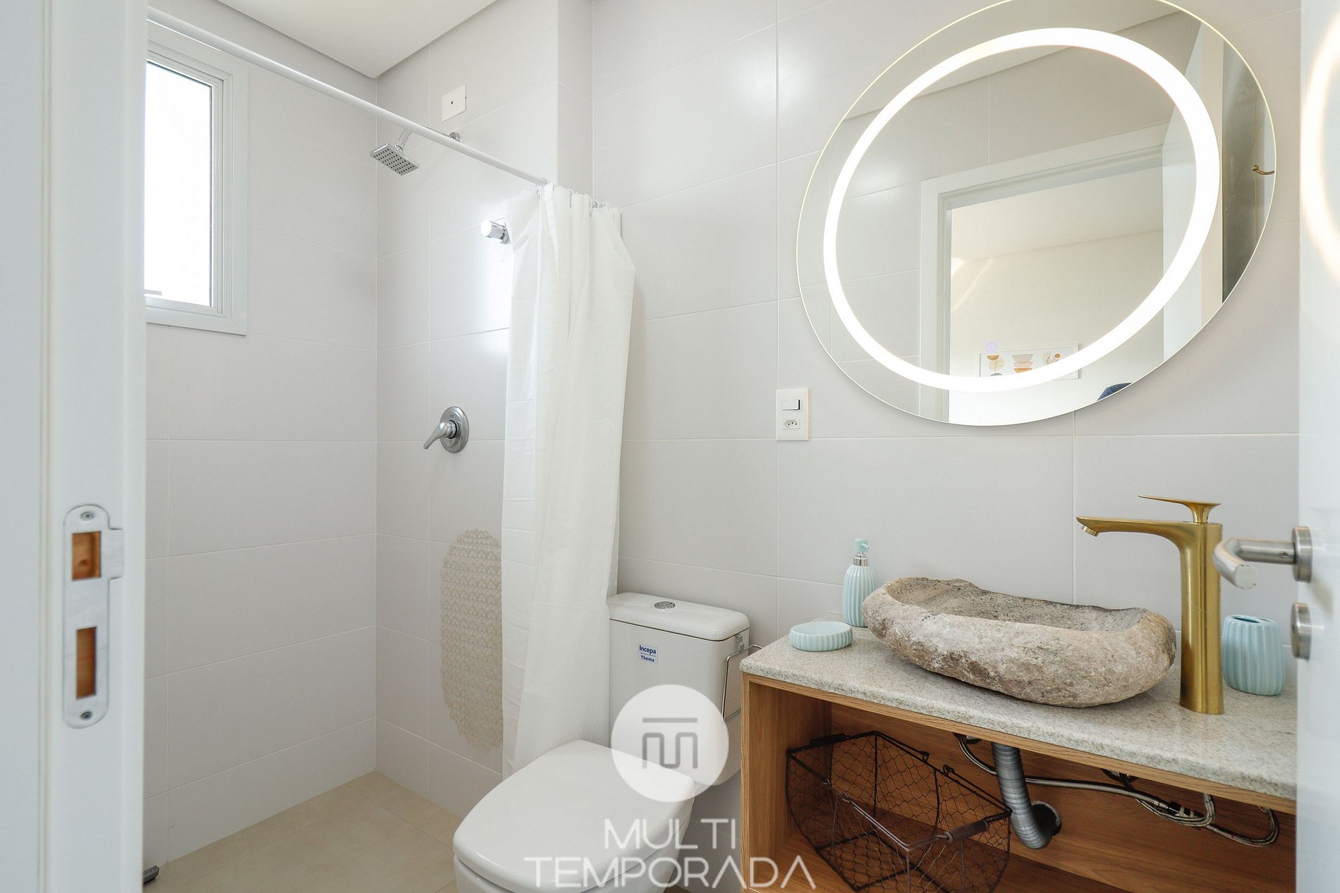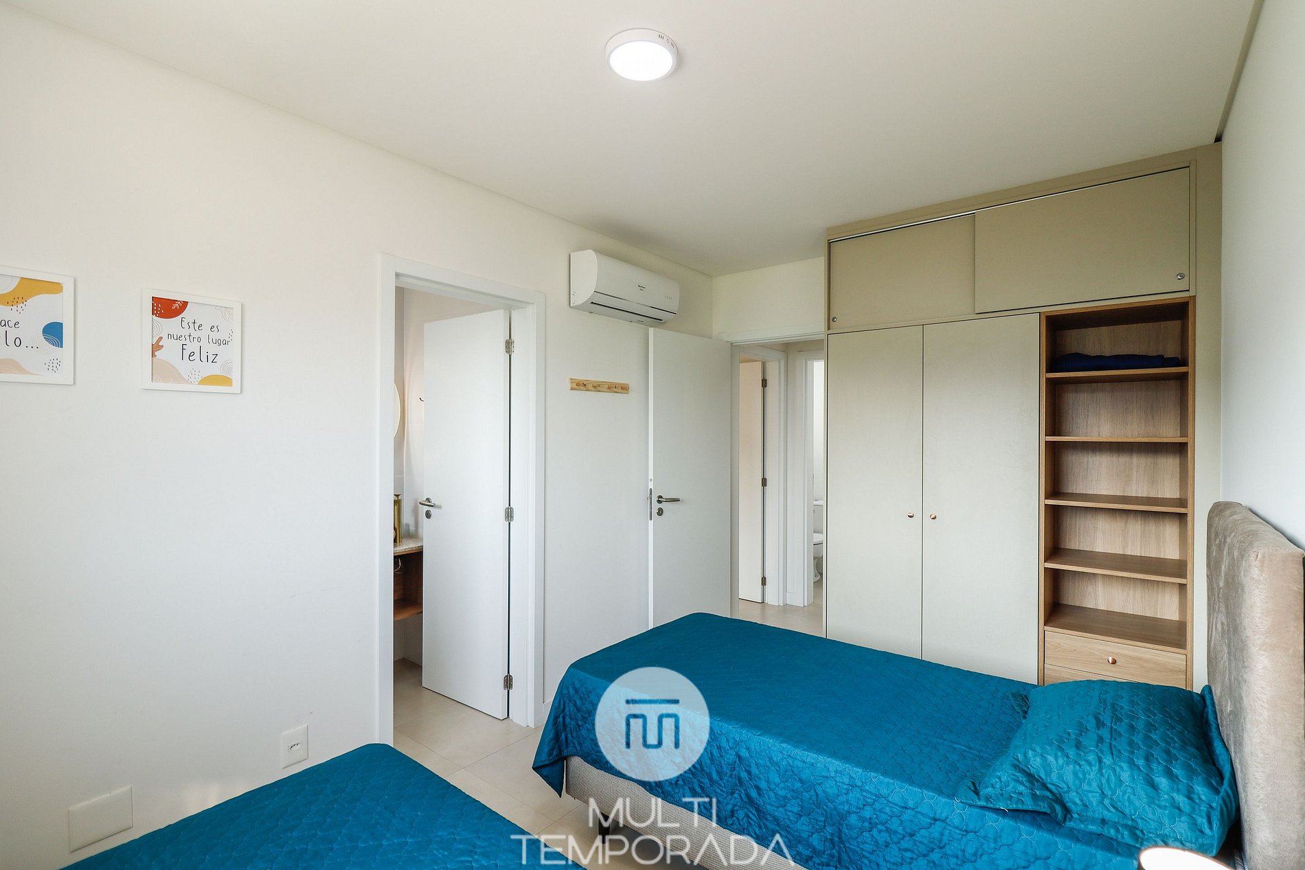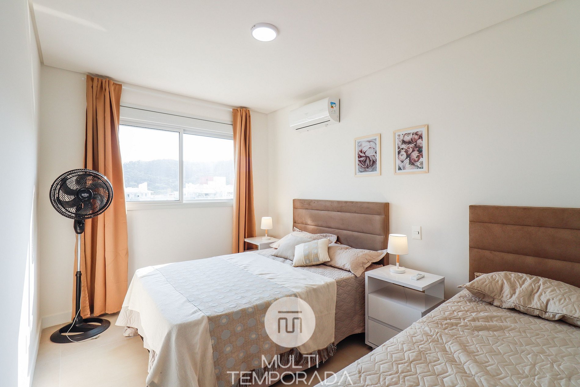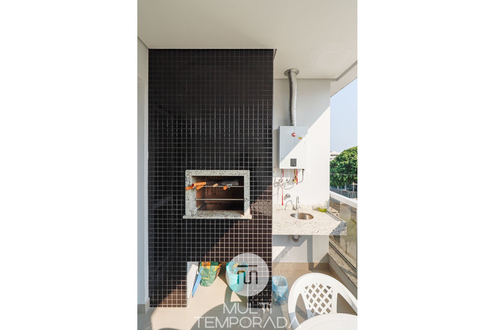 Belo apartamento, à 200 metros da praia, composto por duas suítes, sendo uma com cama de casal, uma cama de solteiro e ar-condicionado, e a outra com duas camas de solteiro e ar-condicionado, banheiro social, sacada com churrasqueira e pia, cozinha completa, área de serviço com máquina de lavar. Possui uma vaga de garagem, conta com wi-fi e TV à cabo.
