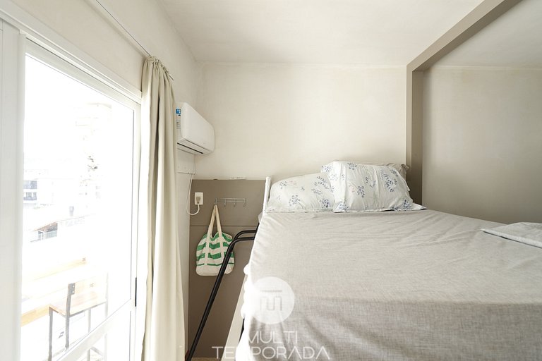 Apartamento Luxo - 01 dormitório com cama de casal, ar condicionado, sala com bi-cama, SmartTV e cozinha (geladeira, microondas, forno, fogão elétrico e itens básicos de cozinha) conjugada, 1 banheiro e sacada.