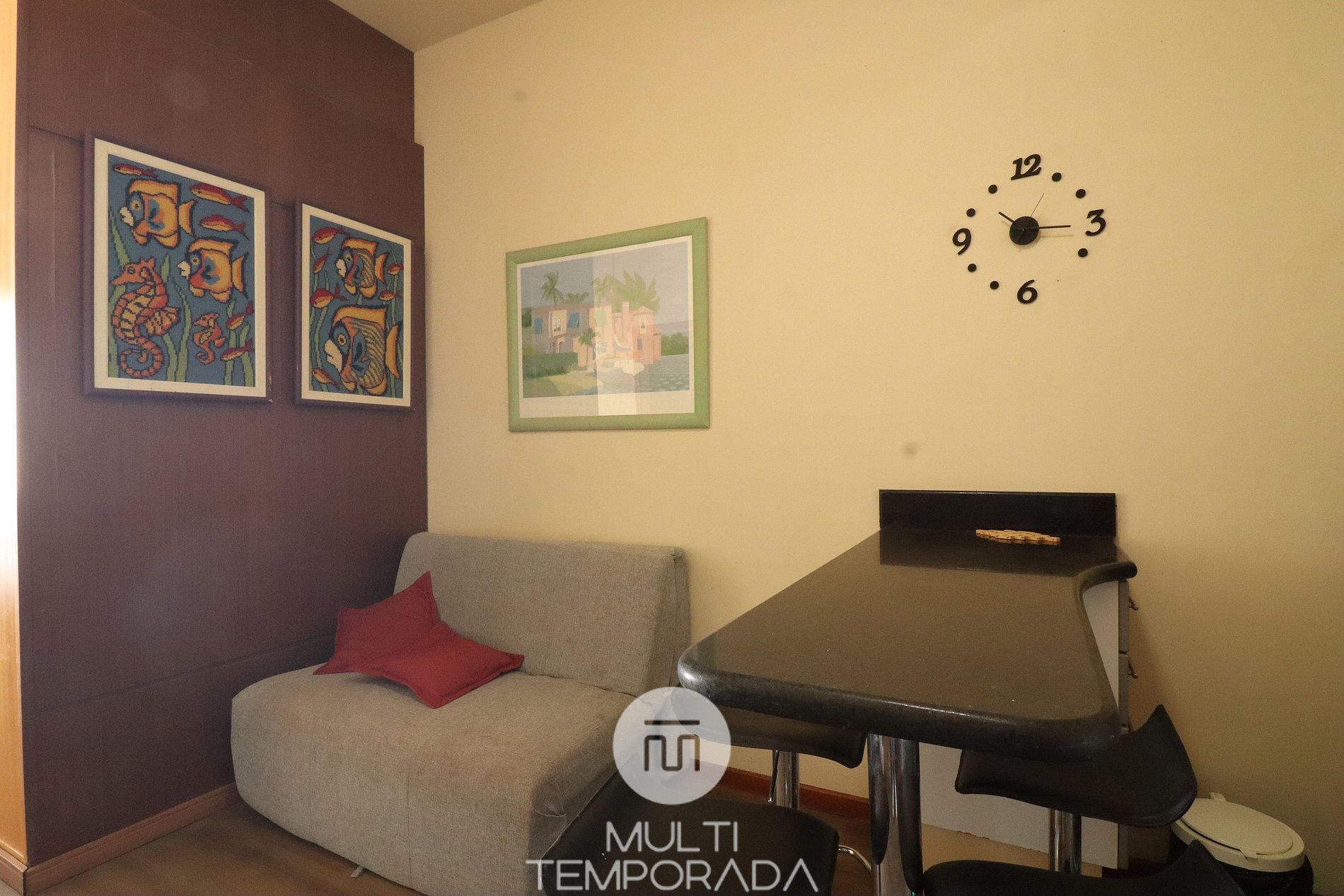 Não tinha pano de chão, não tinha rodo, não tinha uma bucha para lavar a louça, só tinha 1 copo, o abridor do chuveiro espanou, e ninguém foi arrumar durante dias, eu estava com um bebê, tive que misturar a temperatura no registro. O sofá cama é muito duro, impossível dormir ali, recomendo ter um colchonete no guarda-roupa, para colocar em cima. Os itens acima são básicos, de infraestrutura.