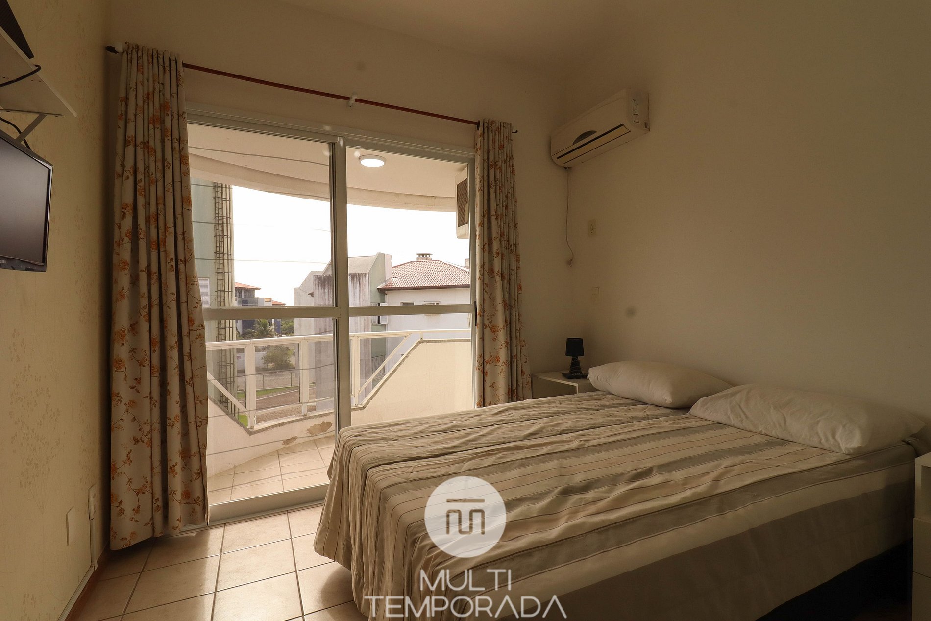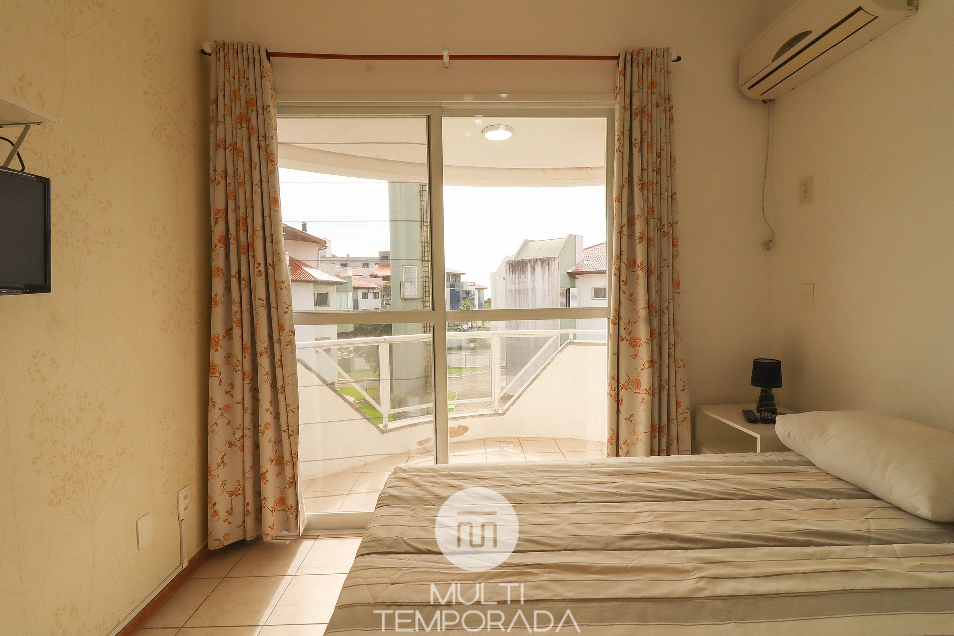 Apartamento Suíte Master - 1 dormitório suíte com cama de casal, 1 dormitório com 1 camas de casal, 1 sala com dois ambientes, com 02 camas de solteiro e 02 camas auxiliares, ar condicionado, cozinha americana completa, área de serviço, 1 banheiro social e 3 sacadas (uma delas com churrasqueira).