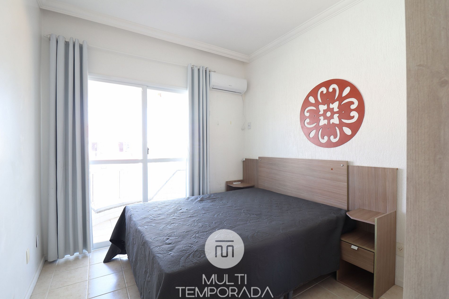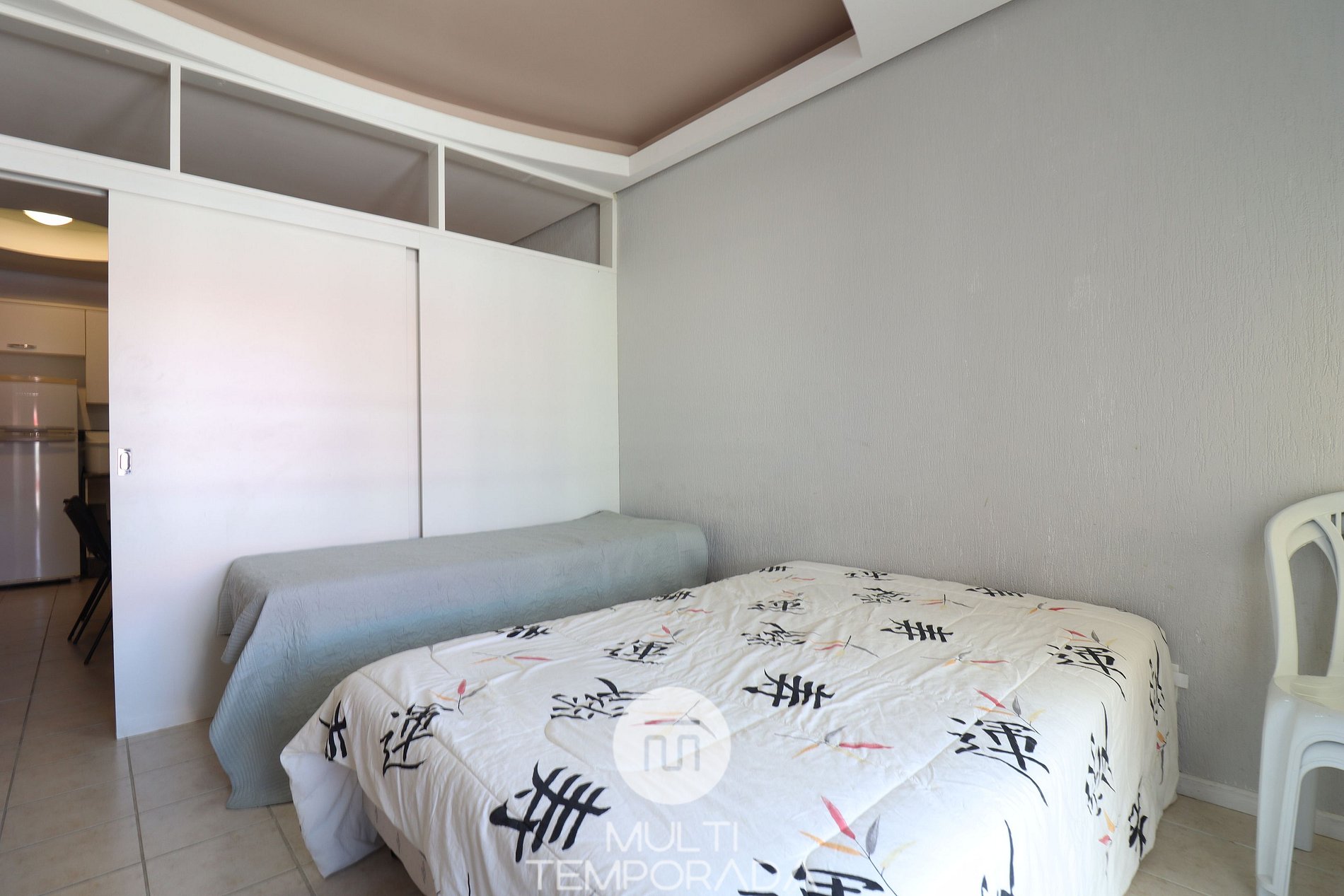 Apartamento Suíte - 1 dormitório com cama de casal, ar condicionado, 1 sala com dois ambientes, uma com sofá cama e outra com uma cama de casal e uma cama de solteiro, cozinha conjugada completa, 1 banheiro com banheira e sacada com churrasqueira.