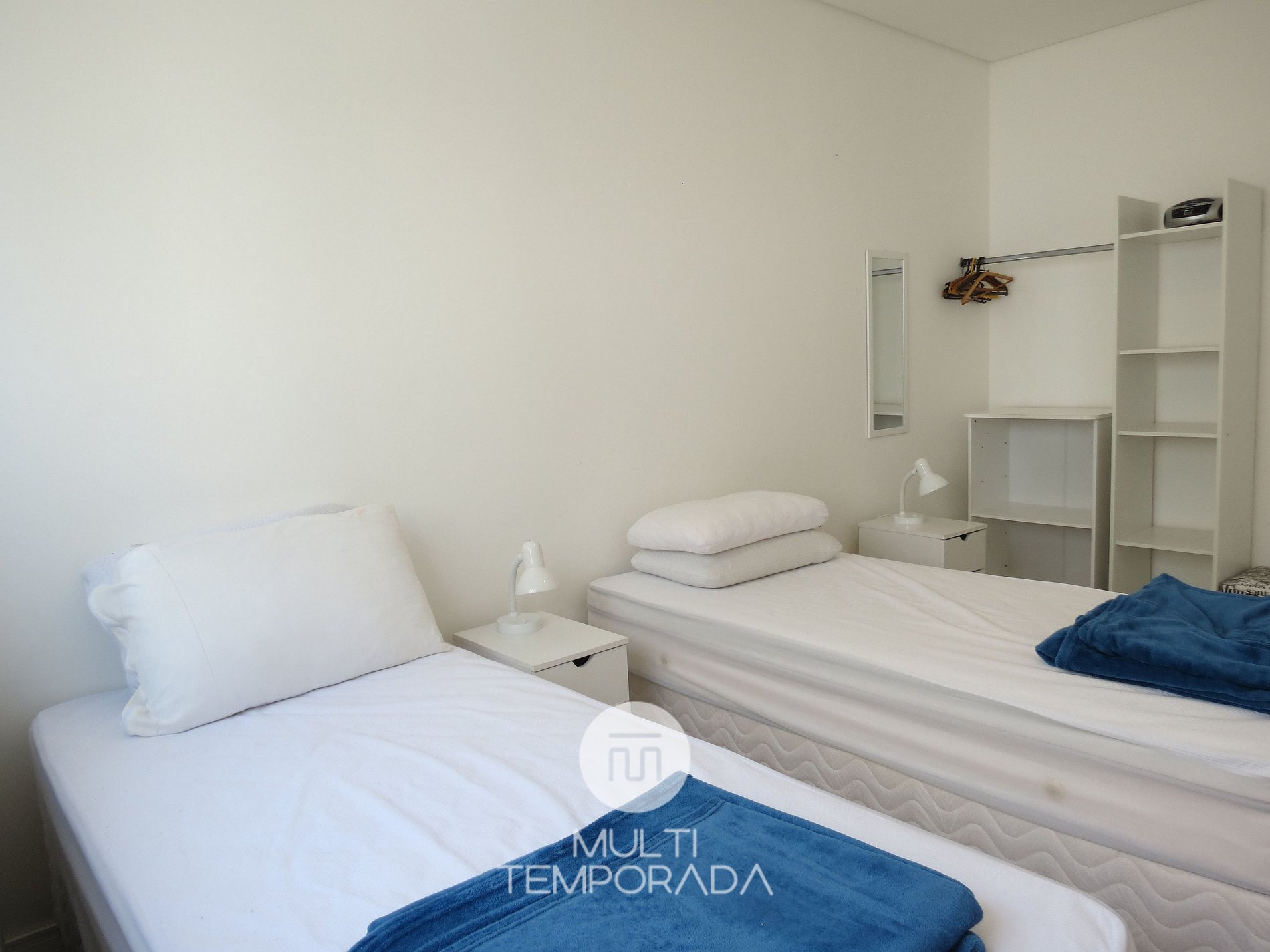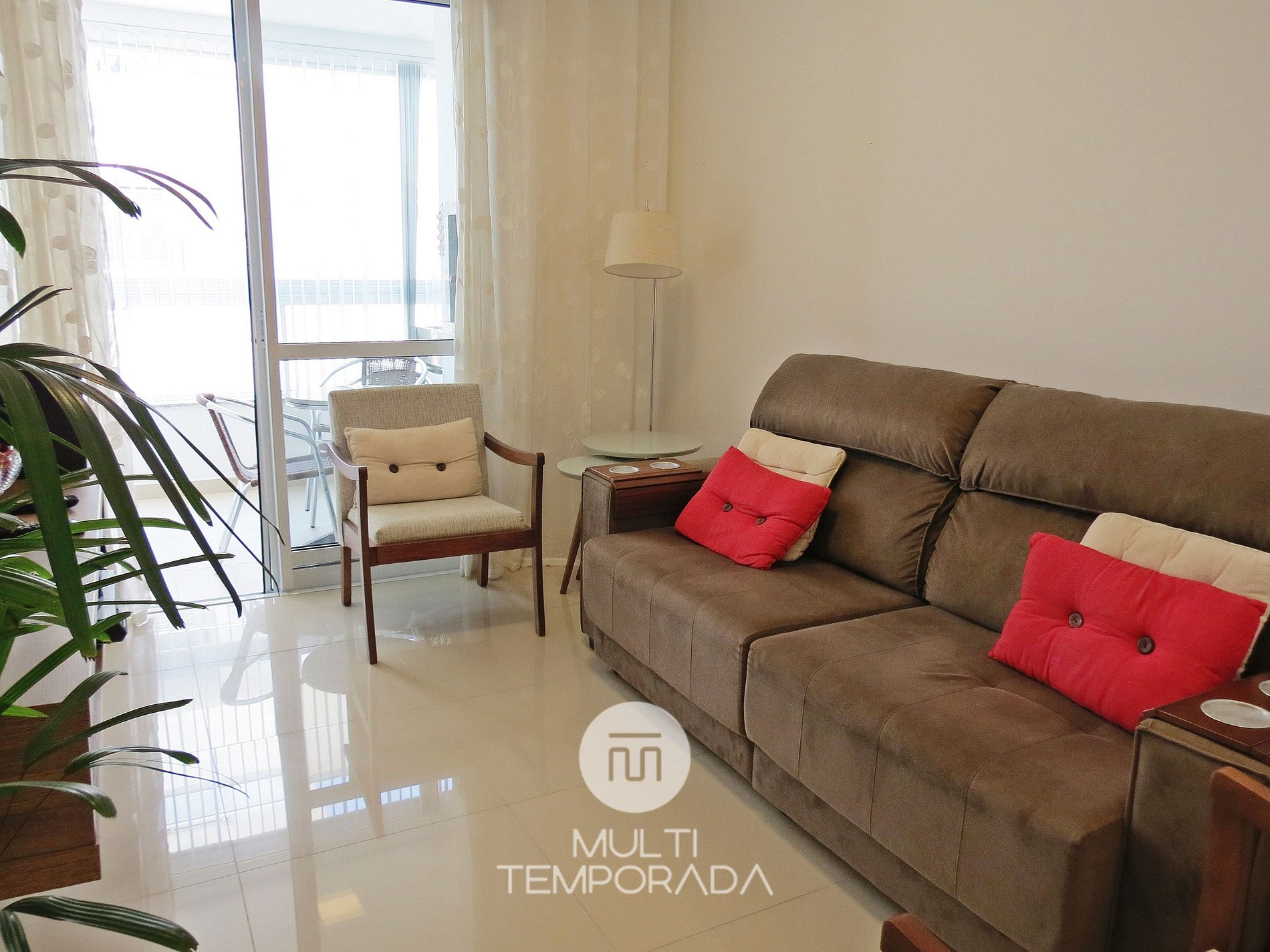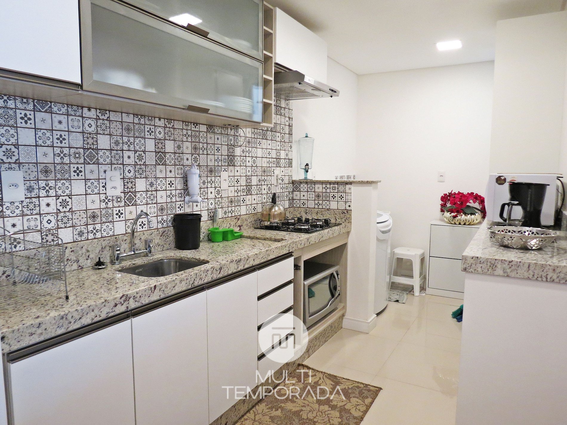 Belo apartamento, à 200 metros da praia, composto por dois dormitórios, sendo uma suíte com cama de casal e ar-condicionado, um quarto com duas camas de solteiro, um colchão extra e ar-condicionado, banheiro social, sacada com churrasqueira e pia, cozinha completa, área de serviço com máquina de lavar e tanque. Possui uma vaga de garagem, conta com wi-fi e TV à cabo.