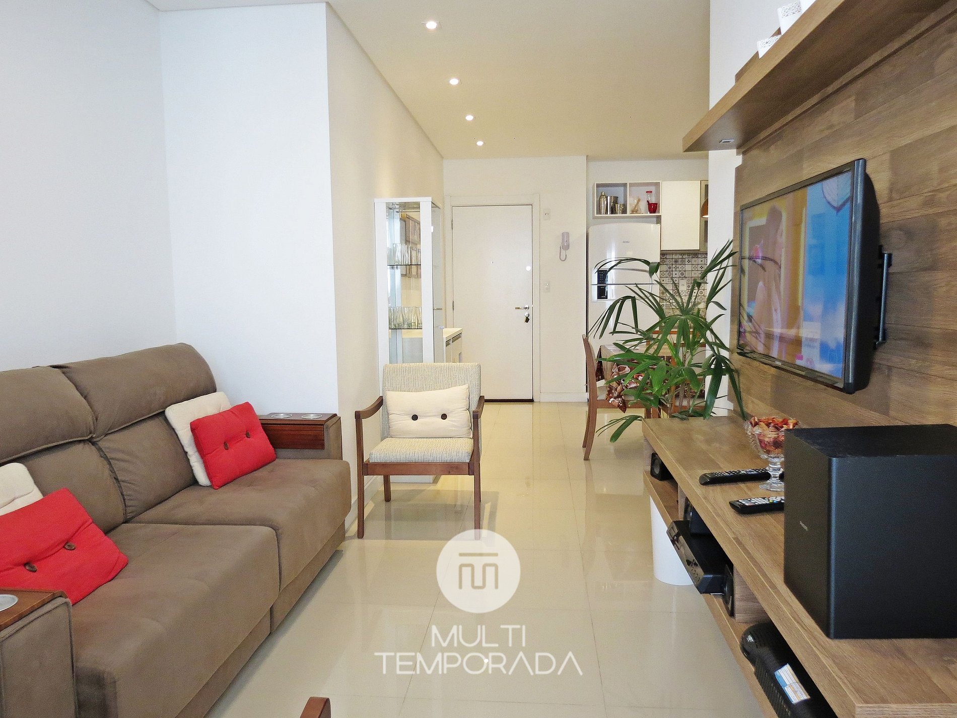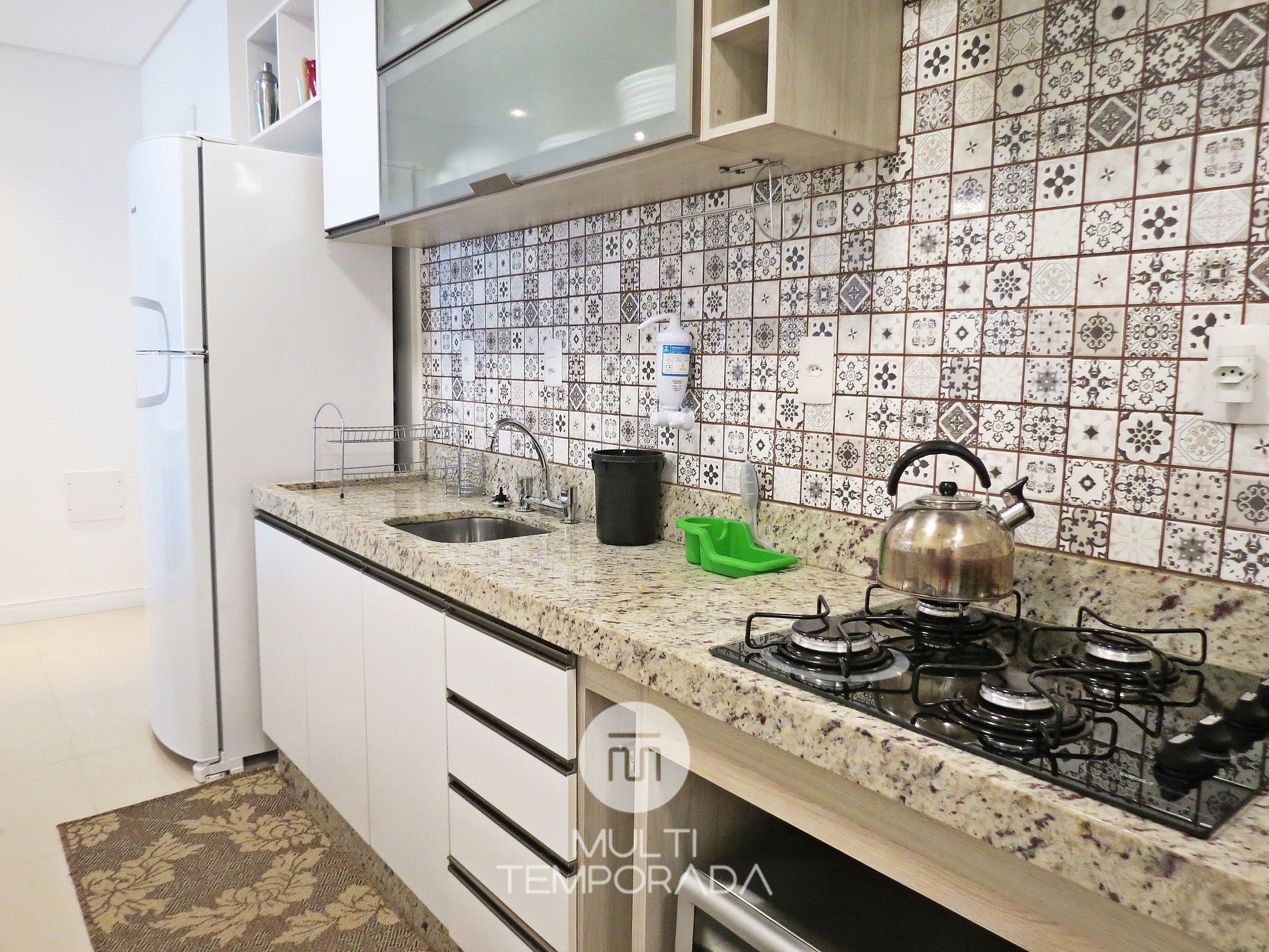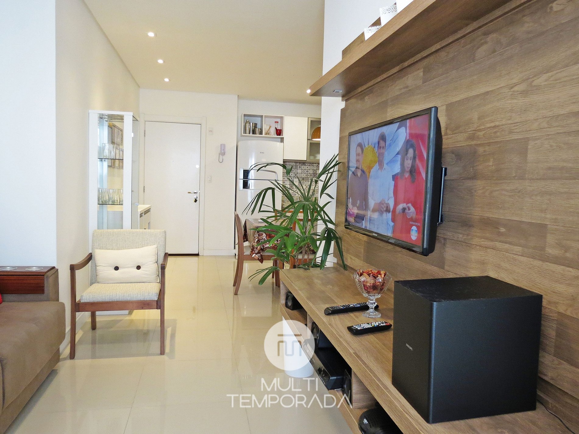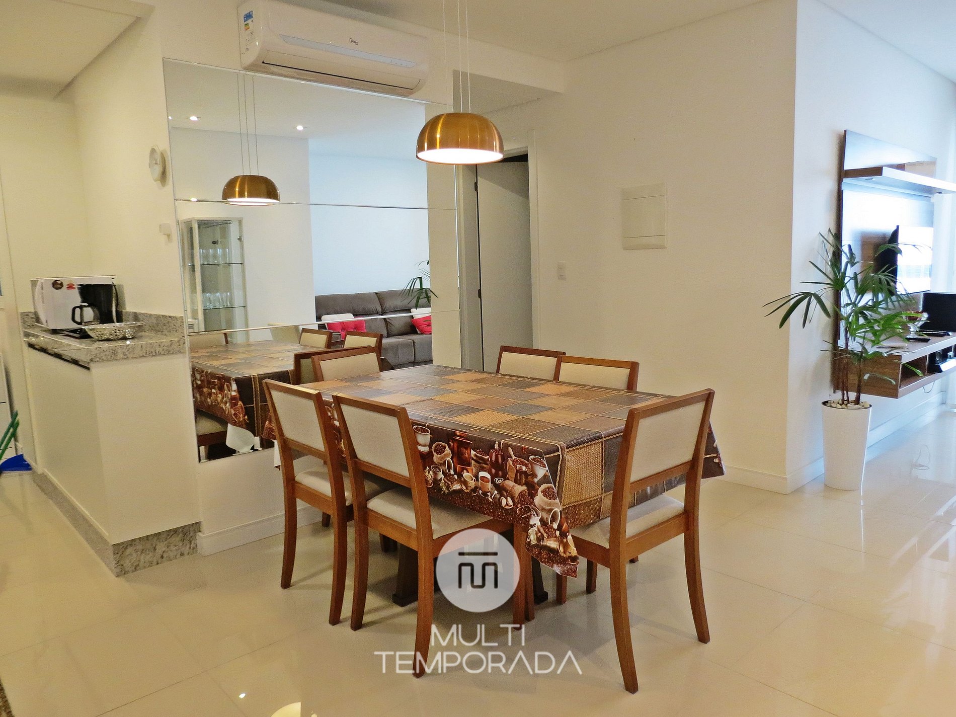 Belo apartamento, à 200 metros da praia, composto por dois dormitórios, sendo uma suíte com cama de casal e ar-condicionado, um quarto com duas camas de solteiro, um colchão extra e ar-condicionado, banheiro social, sacada com churrasqueira e pia, cozinha completa, área de serviço com máquina de lavar e tanque. Possui uma vaga de garagem, conta com wi-fi e TV à cabo.