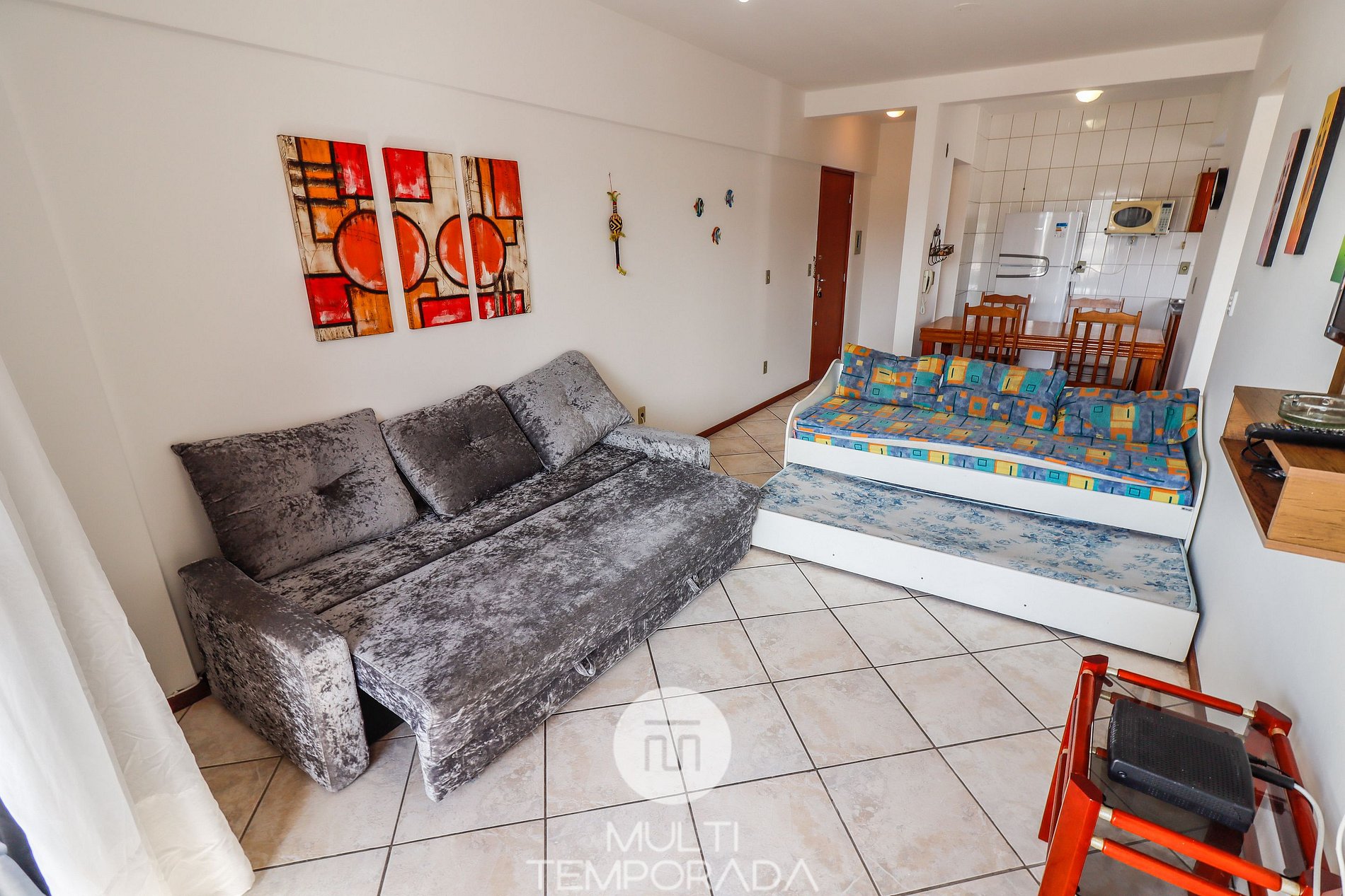 O apartamento é mobiliado, decorado e equipado com eletrodomésticos e utensílios para preparo de refeições, além de dispor de mantas e travesseiros para a sua maior comodidade.