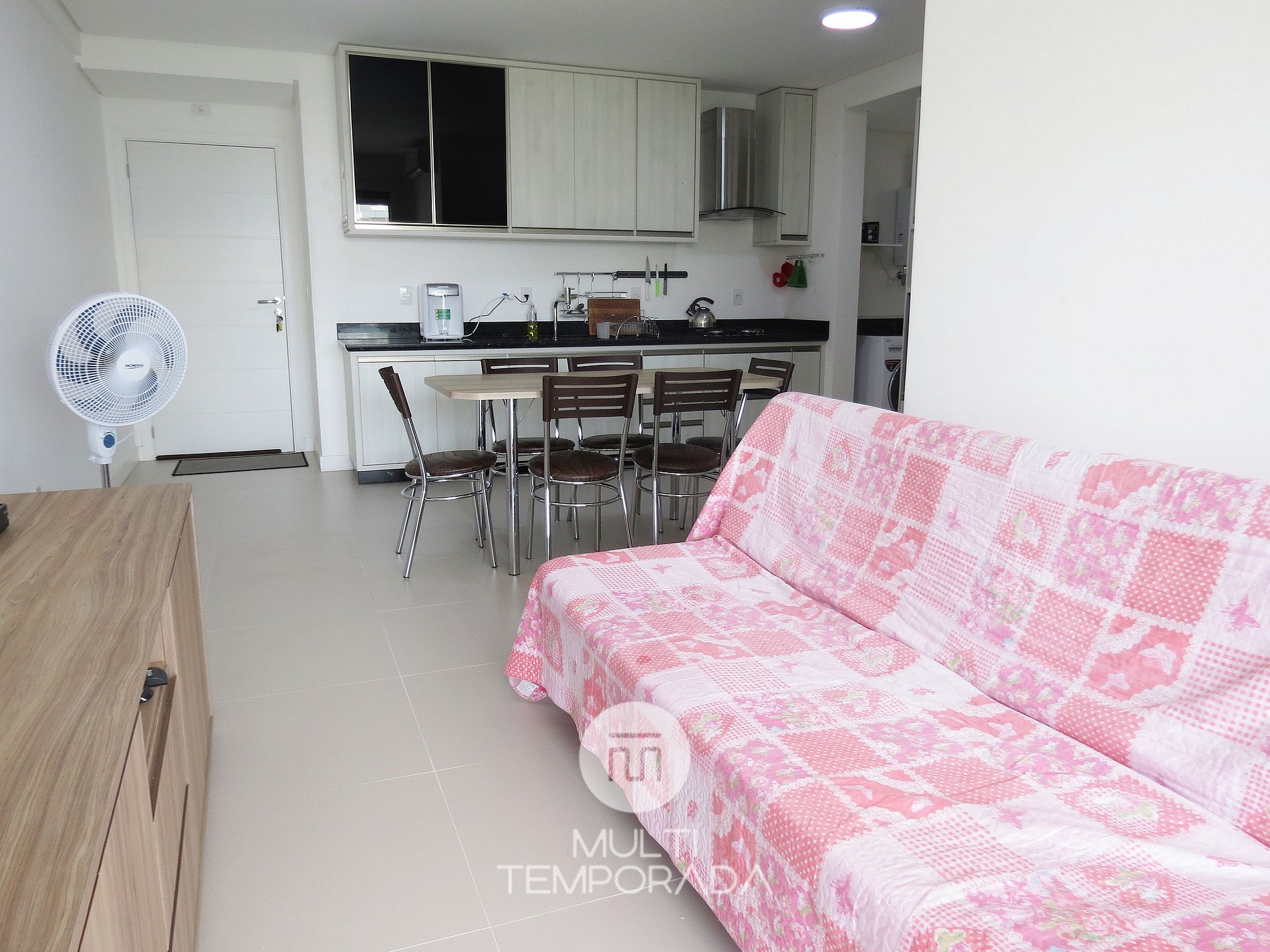 O apartamento é mobiliado, decorado e equipado com eletrodomésticos e utensílios para preparo de refeições, além de dispor de mantas e travesseiros para a sua maior comodidade.