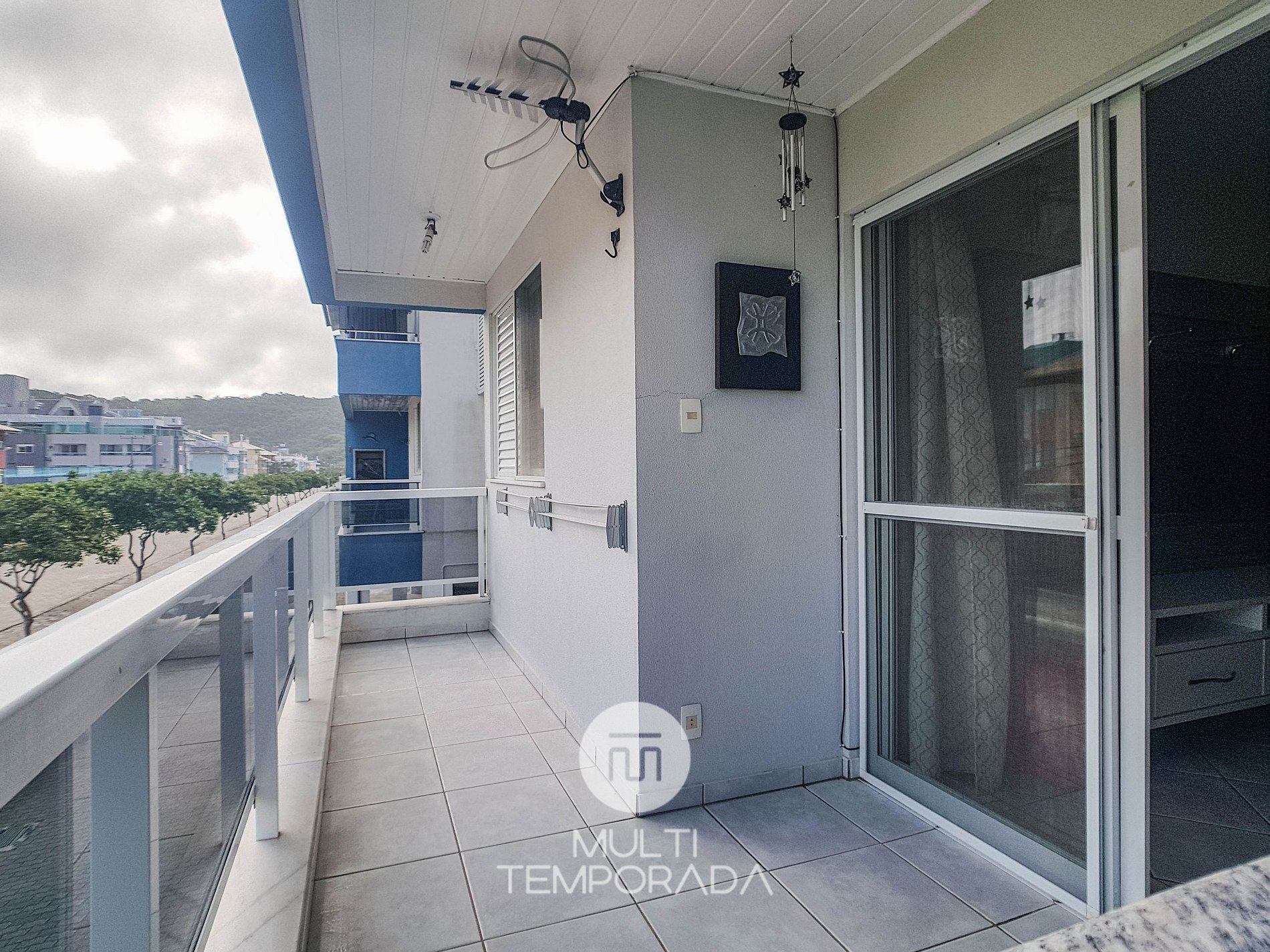 Belo apartamento, à 30 metros da praia, composto por dois dormitórios, sendo uma suíte com cama de casal e ar-condicionado, um quarto com duas beliches e ar-condicionado, banheiro social, sacada com churrasqueira e pia, vista lateral para o mar, cozinha completa, área de serviço com máquina de lavar, tanque e varal. Possui uma vaga de garagem, conta com wi-fi e TV à cabo.