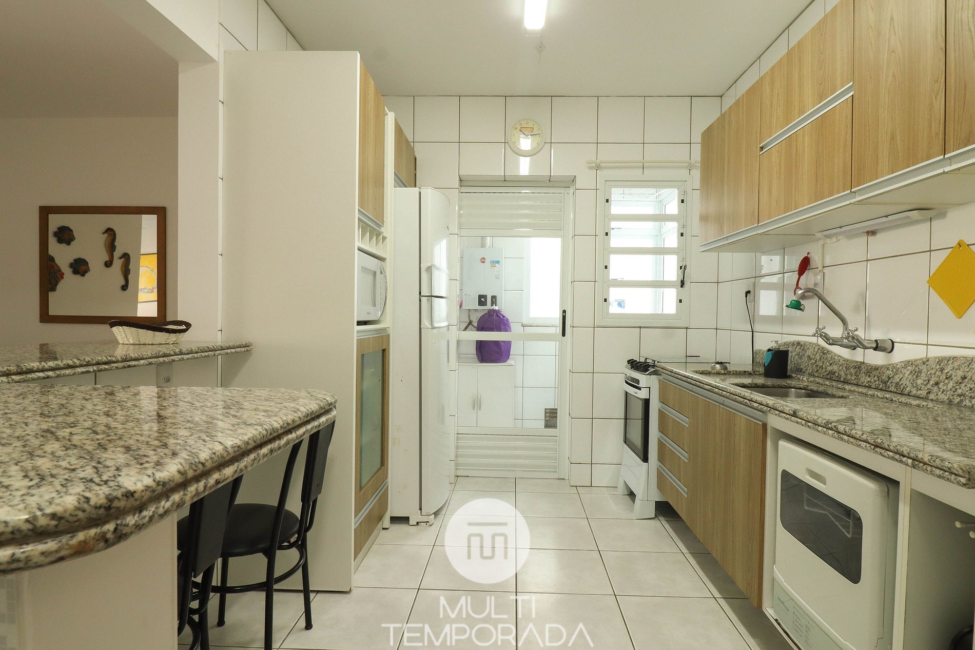O apartamento é mobiliado, decorado e equipado com eletrodomésticos e utensílios para preparo de refeições, além de dispor de mantas e travesseiros para a sua maior comodidade.