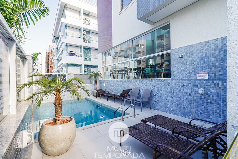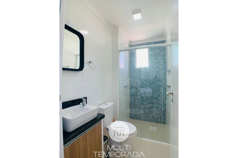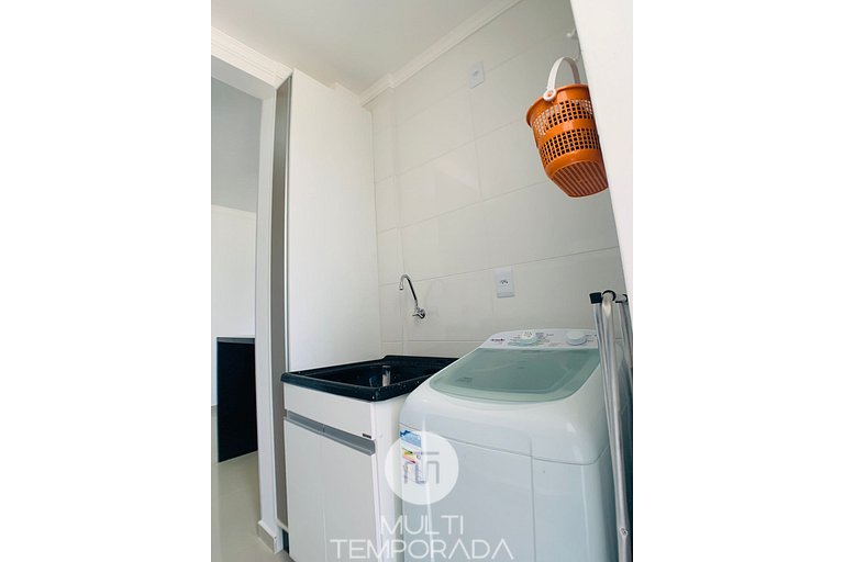 Belo apartamento, à 100 metros da praia, composto por duas suítes, sendo uma suíte com cama de casal e ar-condicionado e outra com duas camas de solteiro e ar-condicionado, banheiro social, sacada com churrasqueira e pia, cozinha completa, área de serviço com máquina de lavar e tanque. Possui uma vaga de garagem, conta com wi-fi e TV à cabo.