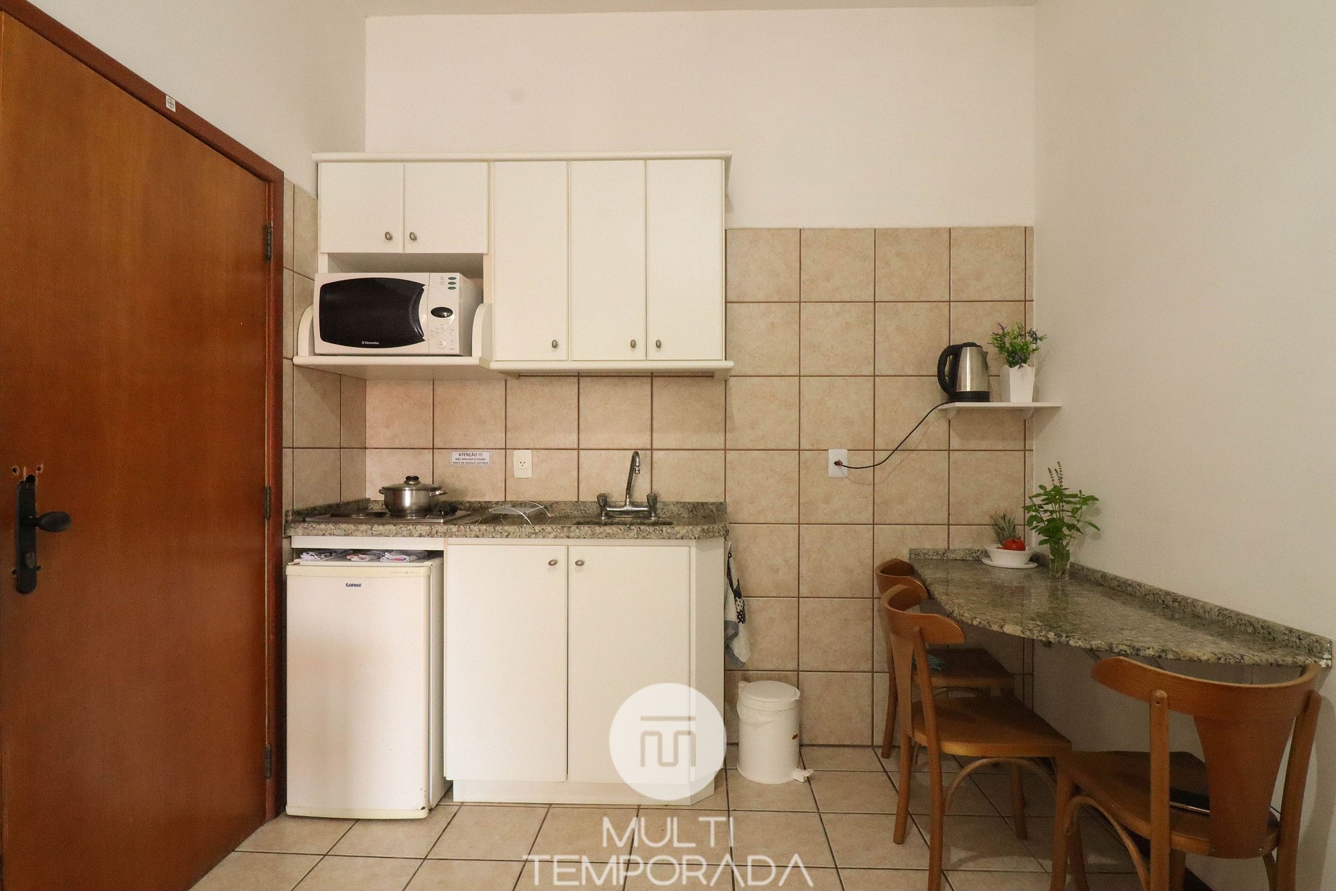 Apartamento Luxo - 01 dormitório com cama de casal, ar condicionado, sala com sofá cama, cozinha conjugada(itens básicos de cozinha), 1 banheiro e sacada.