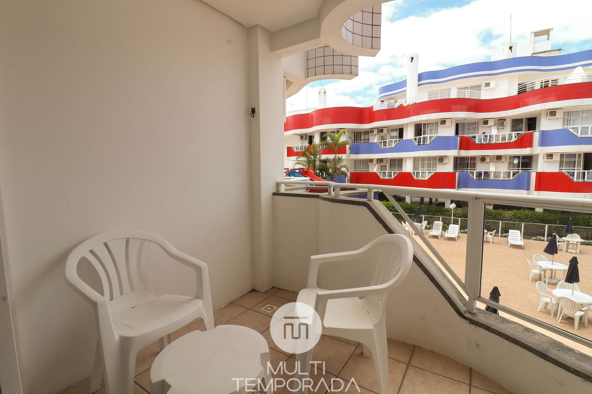 Apartamento Luxo - 01 dormitório com cama de casal, ar condicionado, sala com sofá cama pequeno, ideal para duas crianças, TV e cozinha (minibar, microondas e fogão elétrico, itens básicos de cozinha) conjugada, 1 banheiro e sacada.
