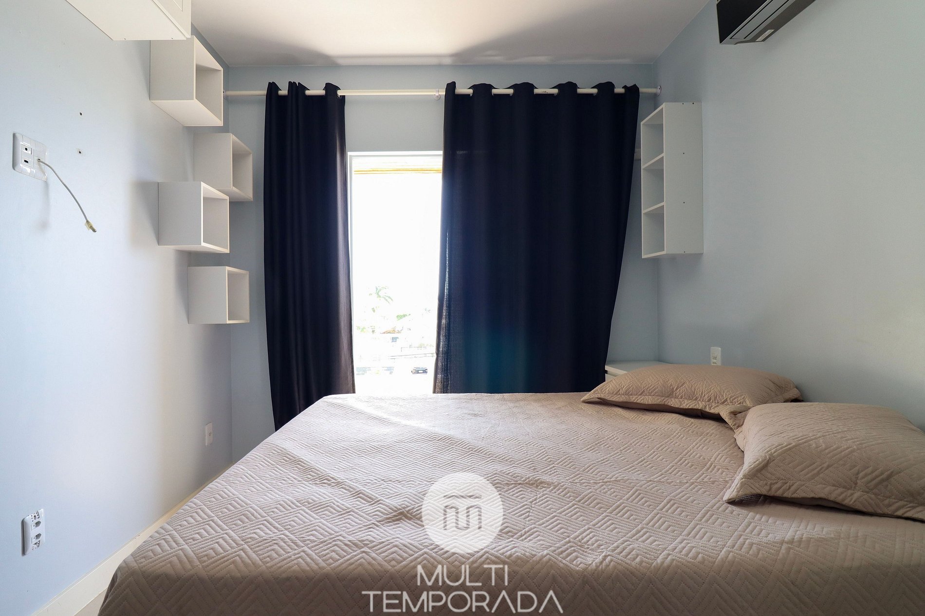 Ótimo apartamento, composto por 02 dormitórios, sendo um dormitório com cama de casal e sacada, o segundo dormitório com duas de cama de solteiro, todos os cômodos com ar condicionado, banheiro social, sacada com churrasqueira à carvão, cozinha completa. Possui uma vaga de garagem.