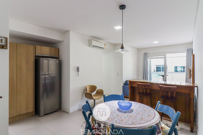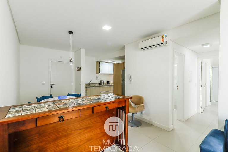 O apartamento é mobiliado, decorado e equipado com eletrodomésticos e utensílios para preparo de refeições, além de dispor de mantas e travesseiros para a sua maior comodidade. O enxoval (roupas de cama e banho) é opcional e contratado à parte, solicite com antecedência. Os locatários terão acesso: - Wi-Fi - Piscina - Estacionamento (1 vaga por apartamento). Consultar sobre o tamanho. O apartamento acomoda até 05 pessoas. Equipado com 02 camas casal, sofá cama. Não trabalhamos com colchões extra. Somos administradora de temporada, NÃO há serviços de hotelaria como café da manhã, enxoval, amenities e reposição de materiais. Limpeza no espaço com troca de enxoval é por agendamento antecipado e mediante pagamento de taxa. Horário para saída (check out) 08:00 até às12:00. Importante já estar preparado para saída 10 minutos antes da chegada do atendente. Horário para chegadas (check in) 16:00 até 18:00. TAXA EXTRA! A quitação do contrato e consequente ocupação do imóvel deve ocorrer até as 18:00h. Entradas e saídas entre 18:00h às 08:00h, o locatário deverá pagar ao atendente uma taxa de R$ 200,00. Respeitar regras do condomínio e horário de silêncio. Importante esclarecer que, caso haja alguma legislação alterando a restrições de uso, essa política de cancelamento poderá, também, sofrer alterações. Este aluguel é regido pela Lei do Inquilinato. Dúvidas? Solicite nossa política de cancelamento. CONSULTE TERMOS E CONDIÇÕES!