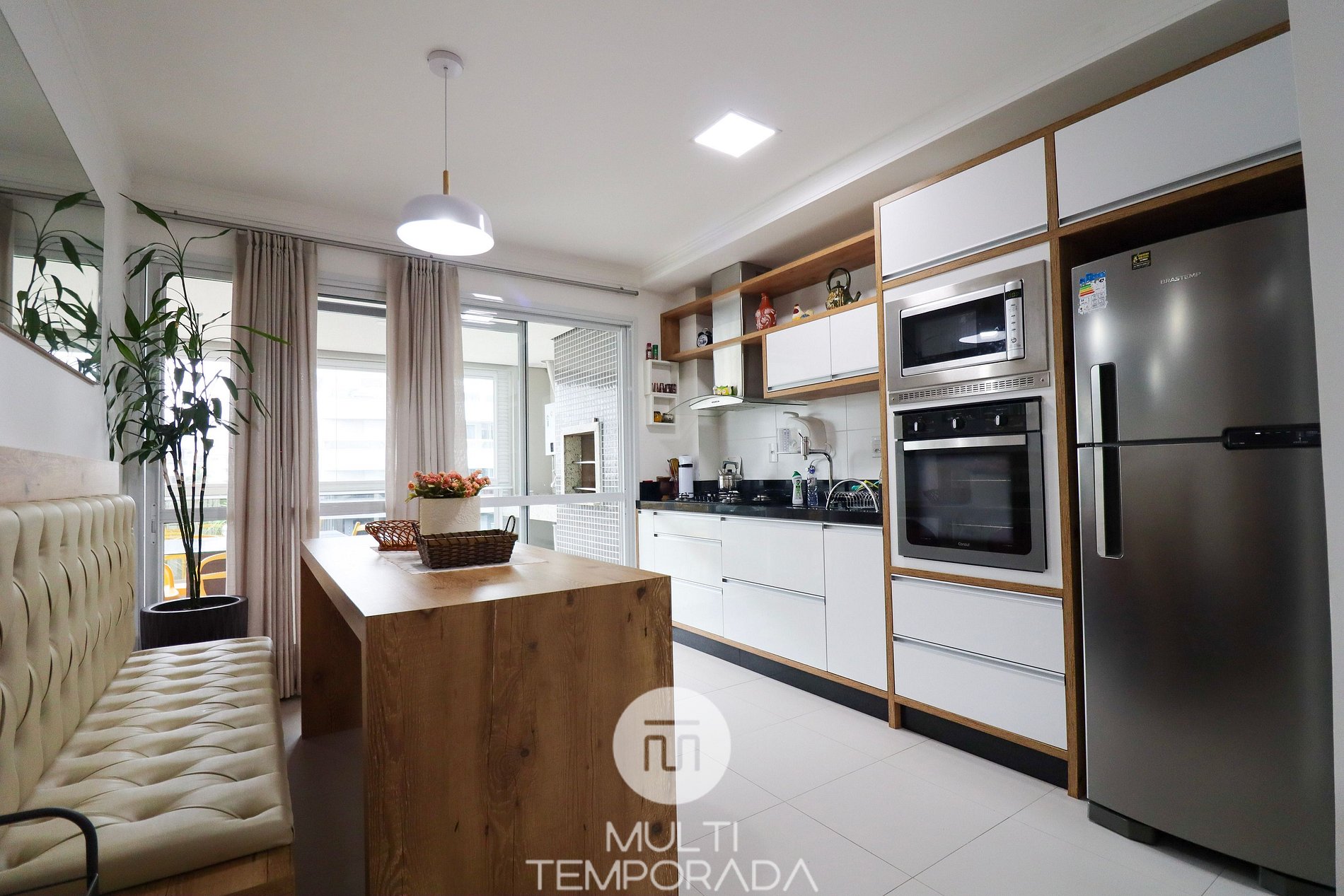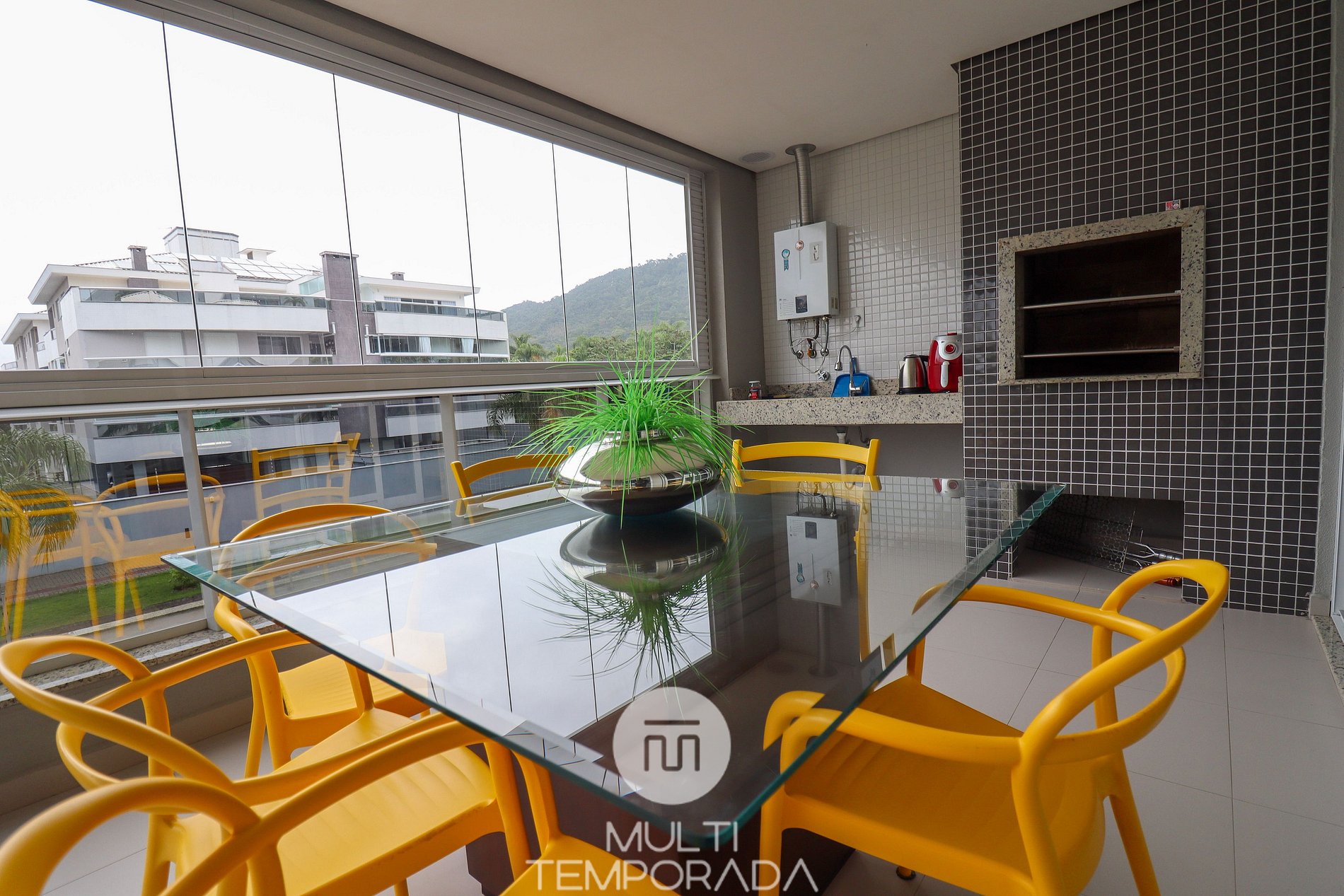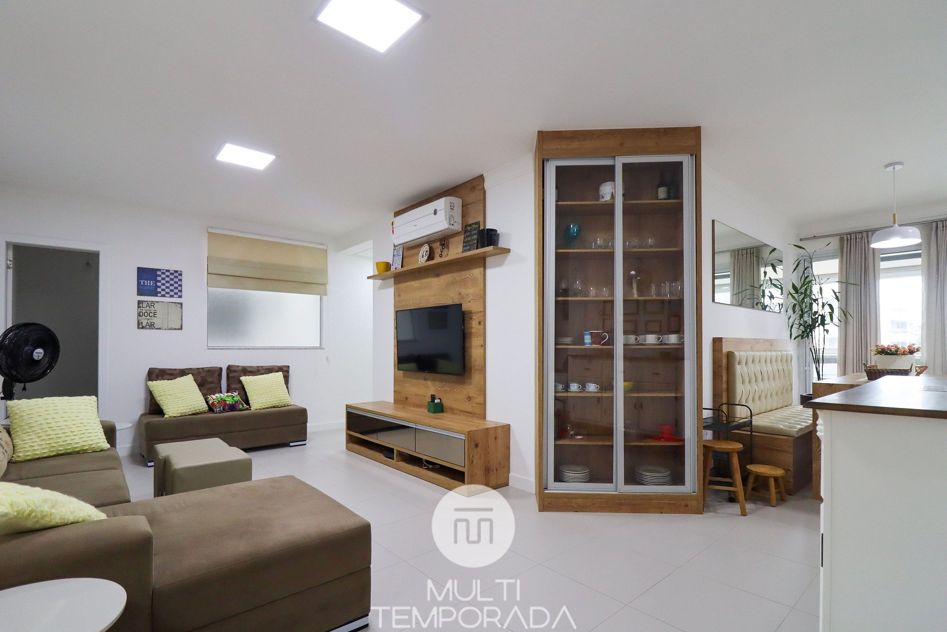 Espetacular apartamento, composto por 02 suítes, sendo uma suíte com duas camas de casal e outra suíte com cama casal queen size, todos os cômodos com ar condicionado e televisão, banheiro social, ampla sacada fechada com churrasqueira à carvão e pia, cozinha completa planejada. Possui duas vagas de garagem. Apartamento impecável com mobília planejada.