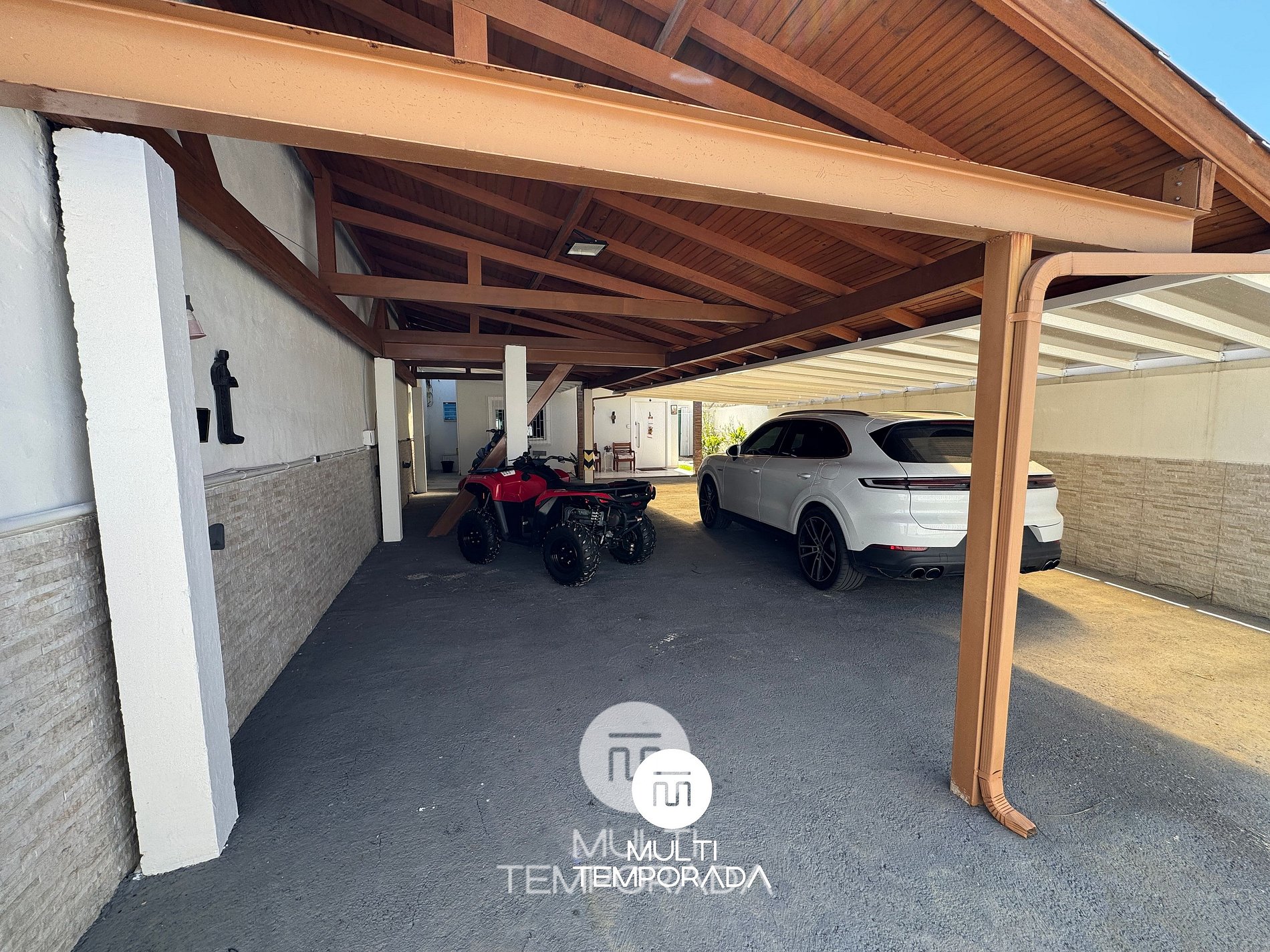 Para completar os momentos de entretenimento, a propriedade disponibiliza uma caixa de som JBL Partybox 710, ideal para criar a atmosfera perfeita em ocasiões especiais. O estacionamento fechado e coberto comporta até quatro veículos de porte médio, oferecendo segurança e praticidade desde a chegada.