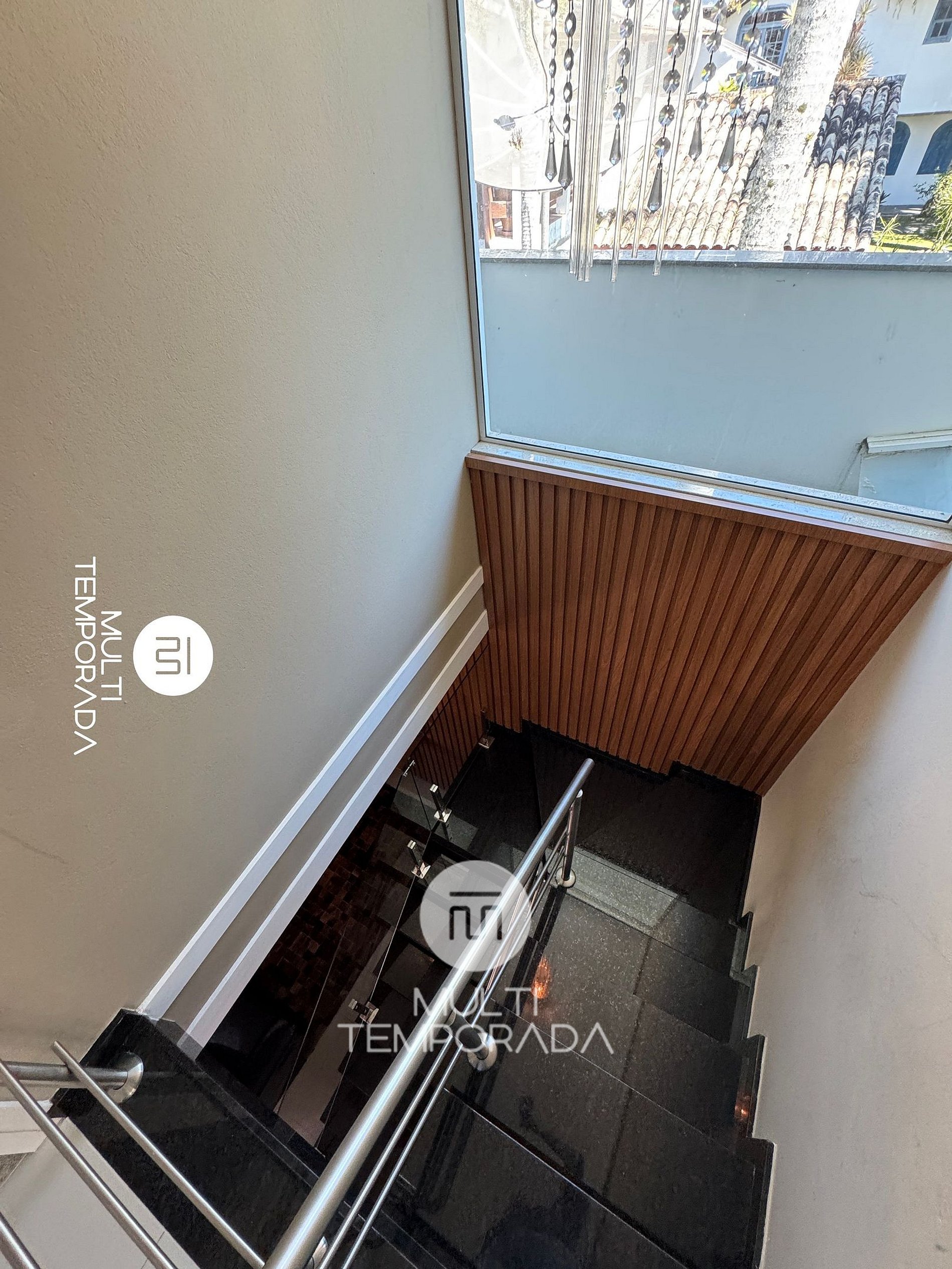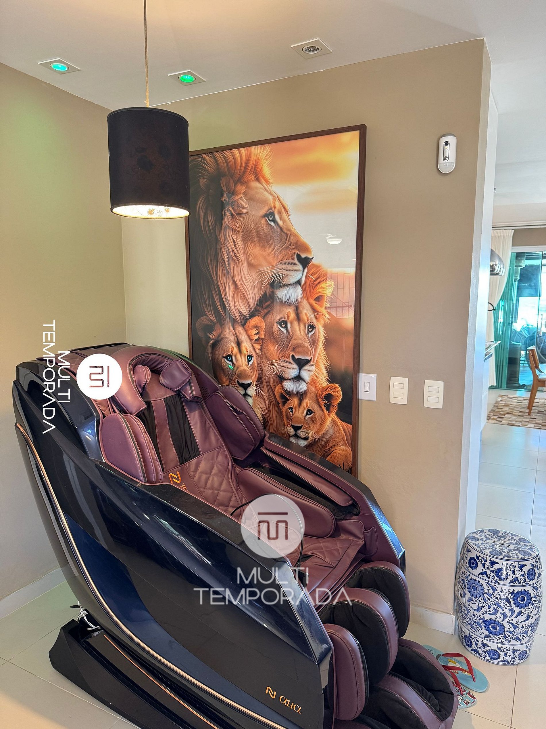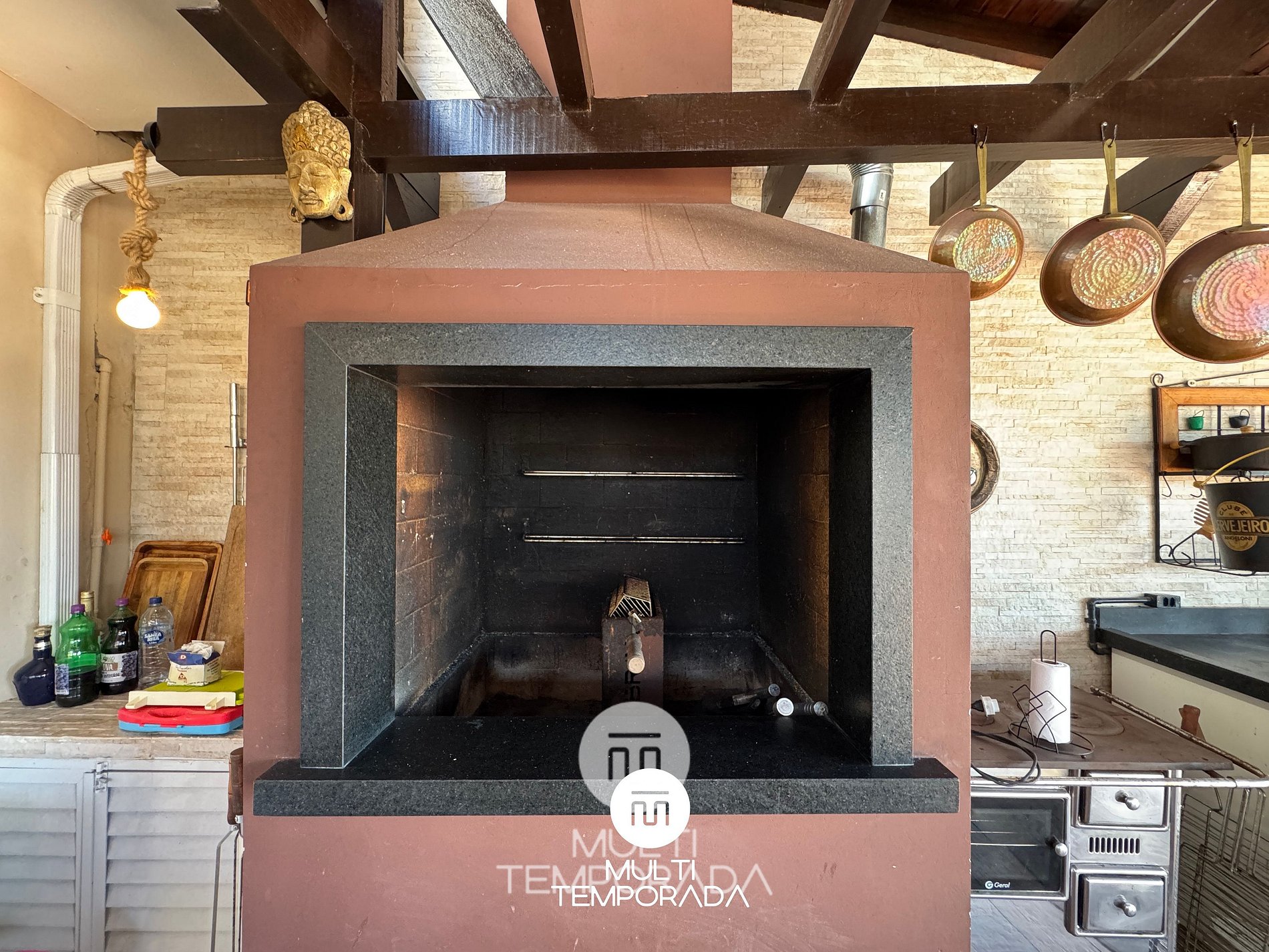 Para mais comodidade, o imóvel oferece internet de alta velocidade (600 mega), quatro Smart TVs distribuídas pelos ambientes sociais, ar-condicionado em todos os cômodos (totalizando sete unidades), sistema de aquecimento central de água, lareira, máquina de lavar, secador de cabelo e ferro de passar.
