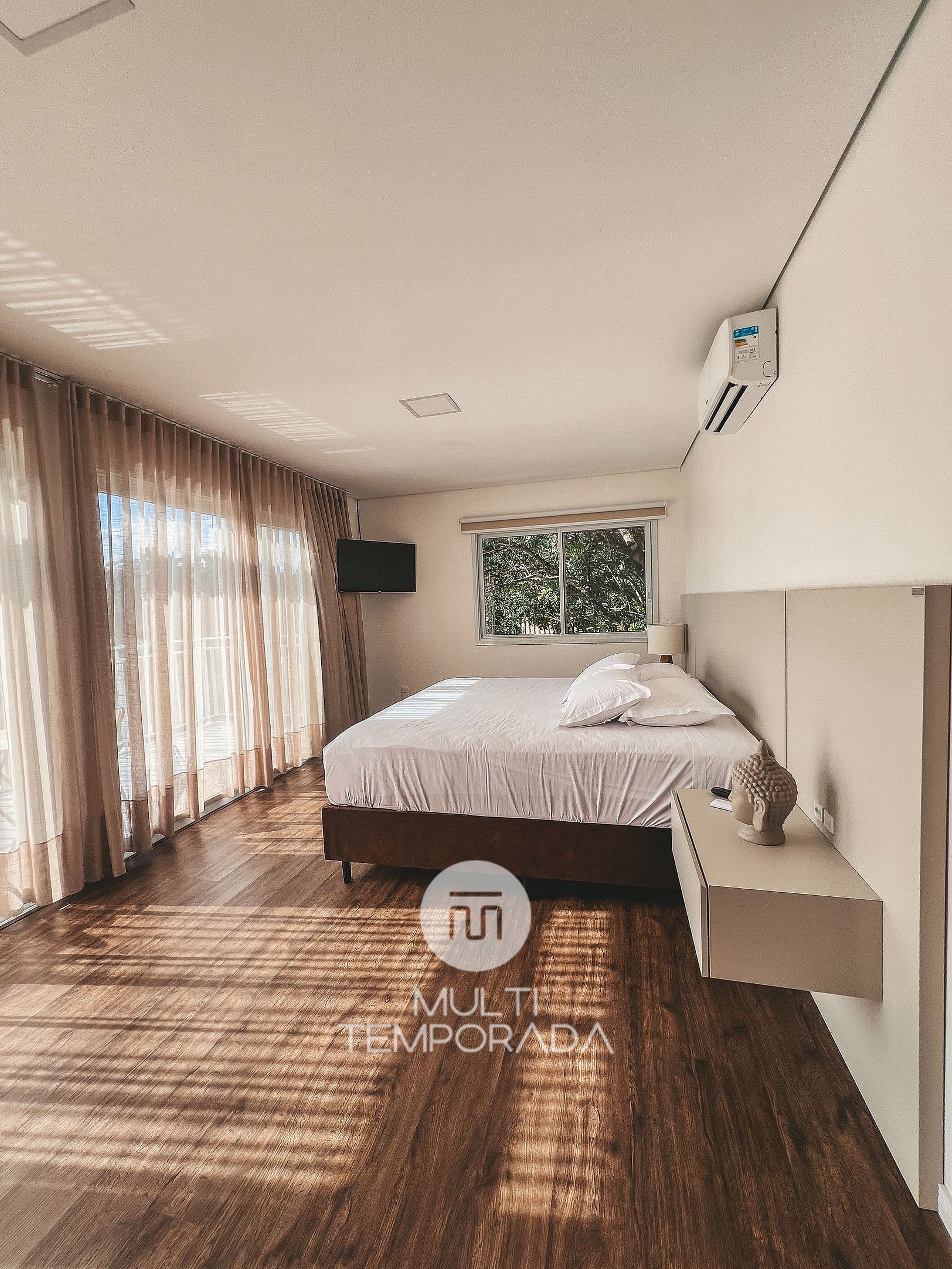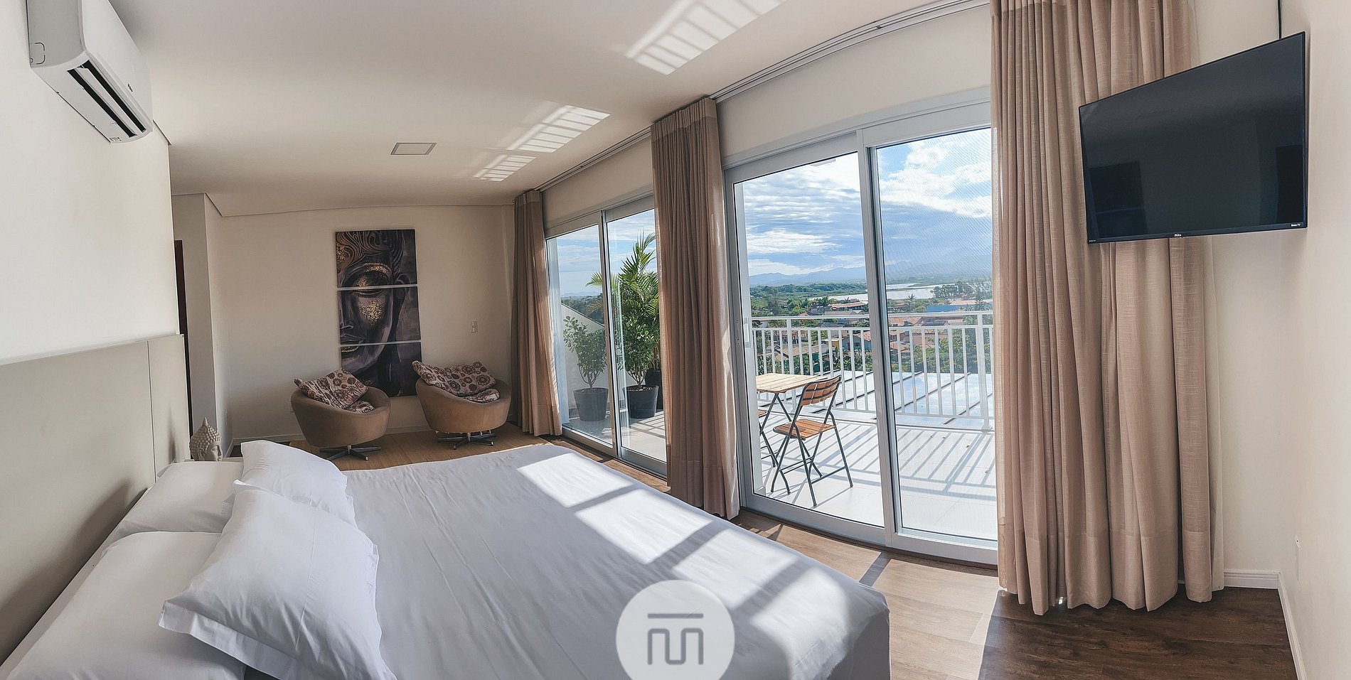 Suíte Master: Cama King-Size, Ar-Condicionado, TV Smart 32'', Closet e Sacada com vista para a Lagoa;